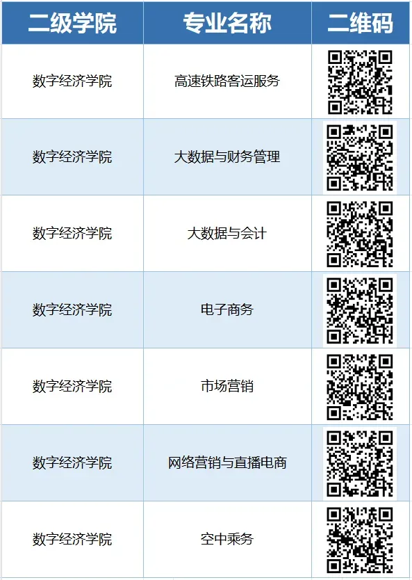 数字经济学院顺应新一轮科技革命和产业变革,现设有市场营销、高速铁路客运服务、空中乘务、电子商务、网络营销与直播电商、大数据与财务管理、大数据与会计七个专业,致力于为相关行业和“乡村振兴”国家战略培养具有创新精神的高层次经济管理和服务人才。
