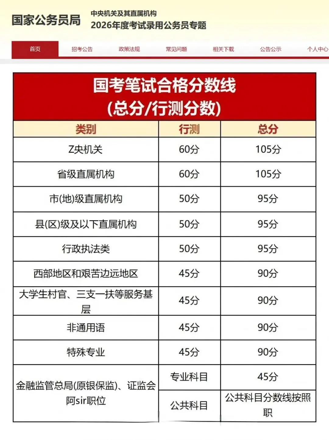 国考成绩已公布