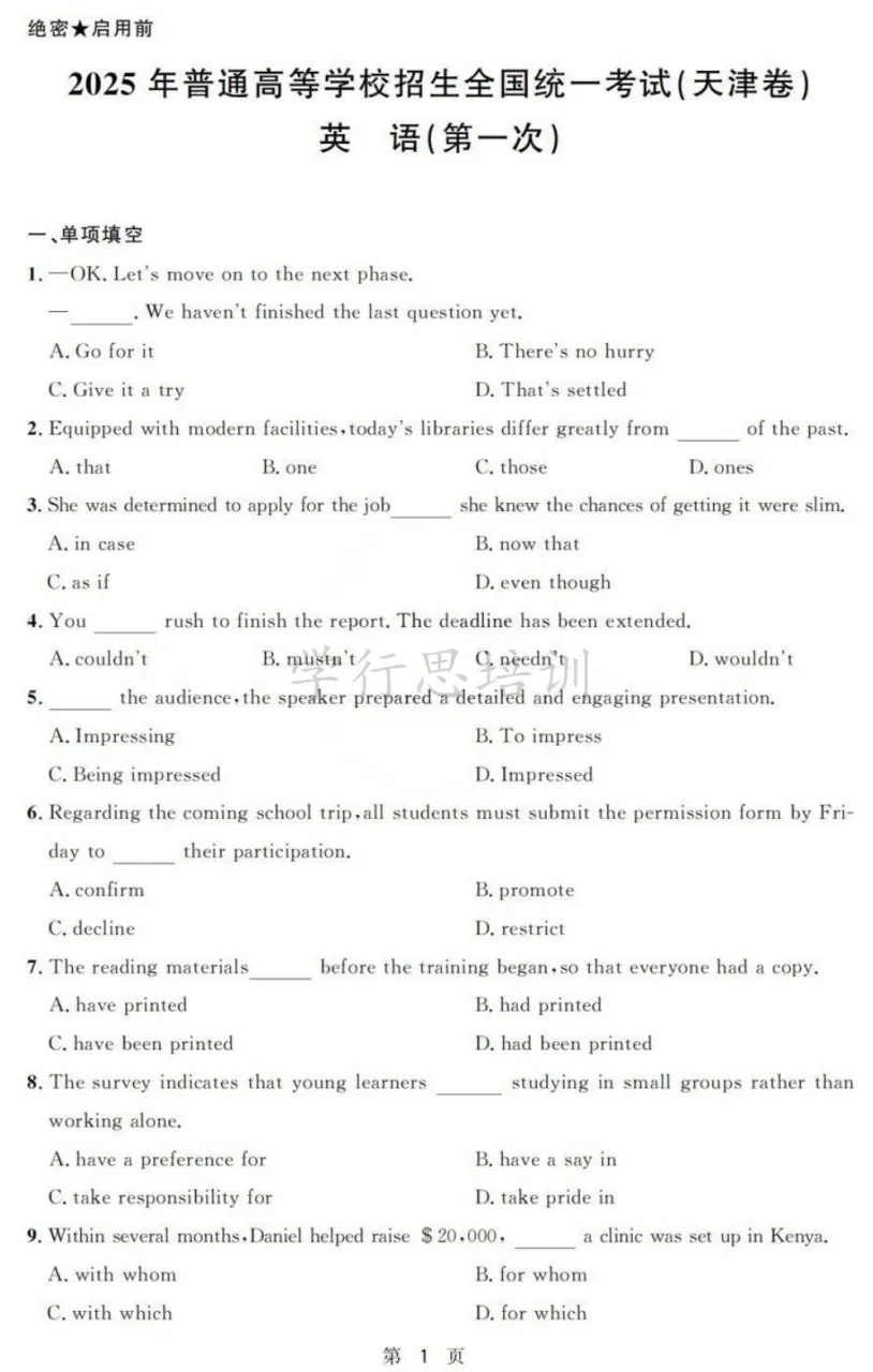 学行思培训学校|天津普通高考英语首考试卷及深度分析