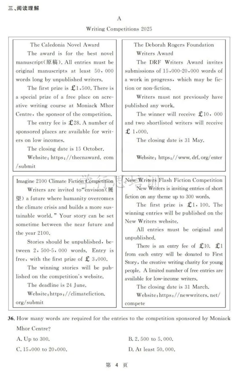 整体难度高于2024年,接近和平一模,学生反馈:写不完。
