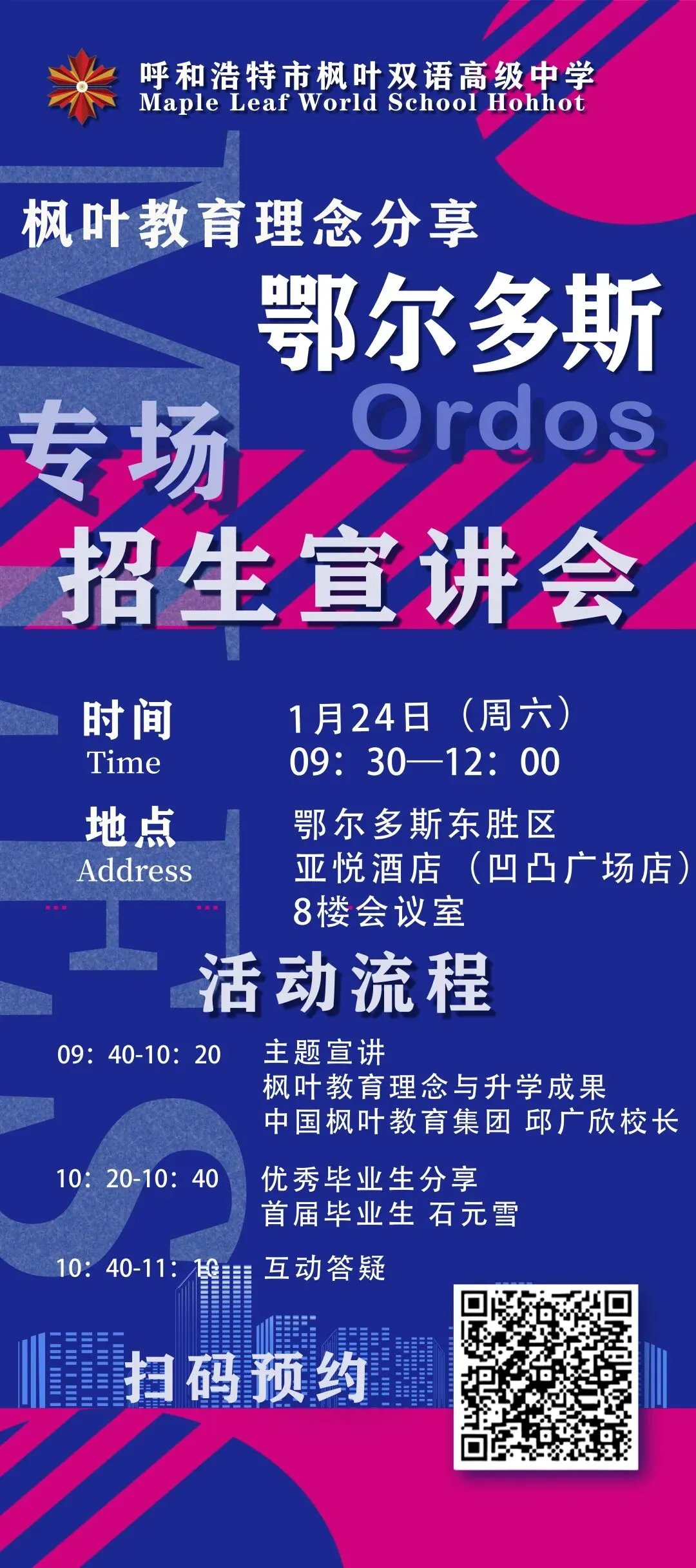 鄂尔多斯家长专场|双通道升学 · 多元未来——呼和浩特枫叶双语高级中学招生宣讲会