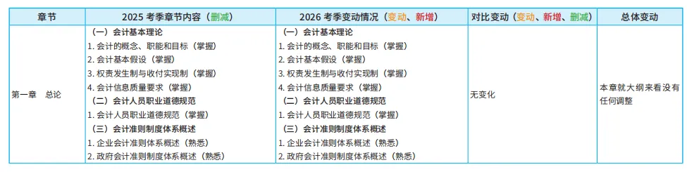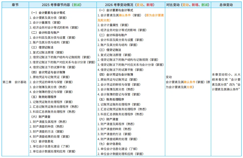 结合今年考纲来看,26年初级考试大纲各章节变动不大,重点章节依旧重点,新增知识点的数量也不多。▽以《初级会计实务》25&26年考纲变动详情为例▽🔎26年初级会计考试大纲&变动解析.pdf