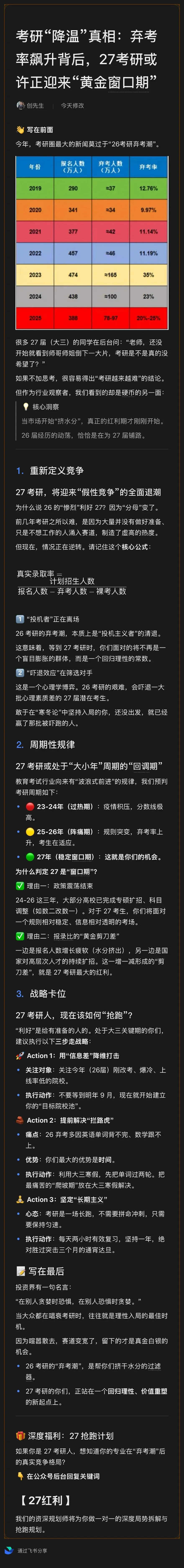 >考研“降温”真相:弃考率飙升背后,27考研或许正迎来“黄金窗口期”