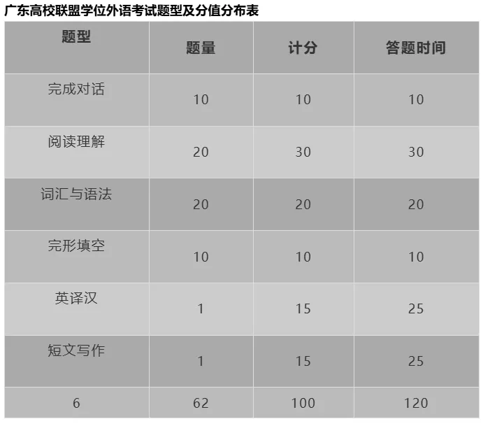 考试次数:目前广东高校联盟学位外语每年一次考试。