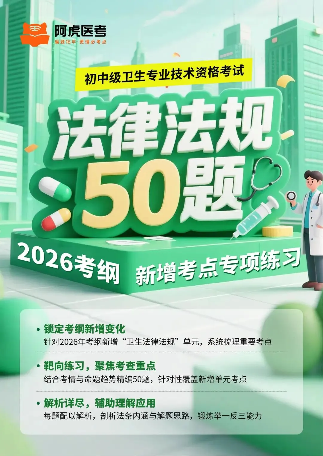 这次考纲新增的卫生法律法规版块,确实让不少考生头疼——内容全新,不知道重点在哪,也怕复习错方向。针对这个问题,我们紧扣大纲新增要求,结合最新的考情和命题趋势,反复筛选打磨,选出了50道核心考题,整理成了这份《初中级卫生专业技术资格考试法律法规 50 题》资料。