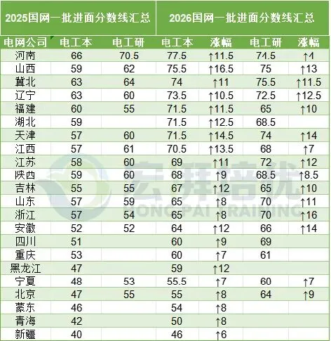 26届国网一批,各省昨天已陆续发布面试通知,宏湃统计了部分省最新进面分数线,并与25届一批对比,带大家分析这次国网一批难度如何,预祝各位进入面试的同学都能够取得好成绩!
