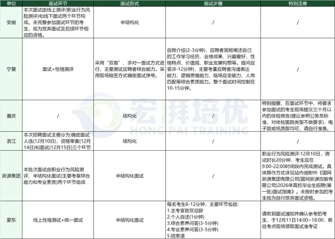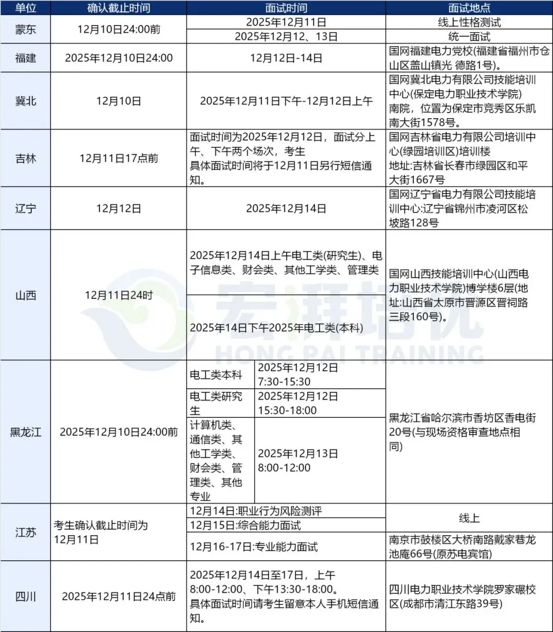 此外,目前发布面试公告的有:安徽、宁夏、重庆、浙江、国网新源集团有限公司、蒙东、福建、冀北、吉林、辽宁、山西、黑龙江、江苏、四川等。