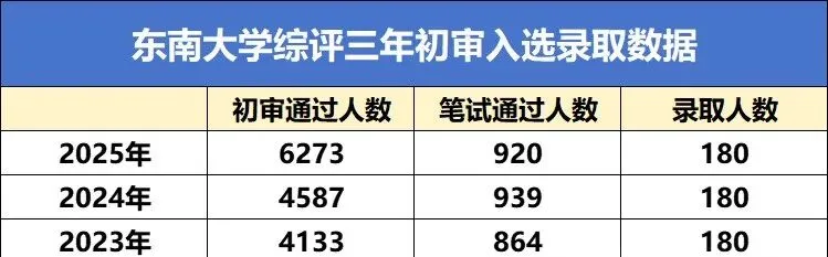 东南大学综合评价近三年报名人数呈逐年递增的趋势,但近三年的录取人数非常稳定,每年录取180名江苏考生,竞争加剧,江苏考生和家长须提前规划综评升学。