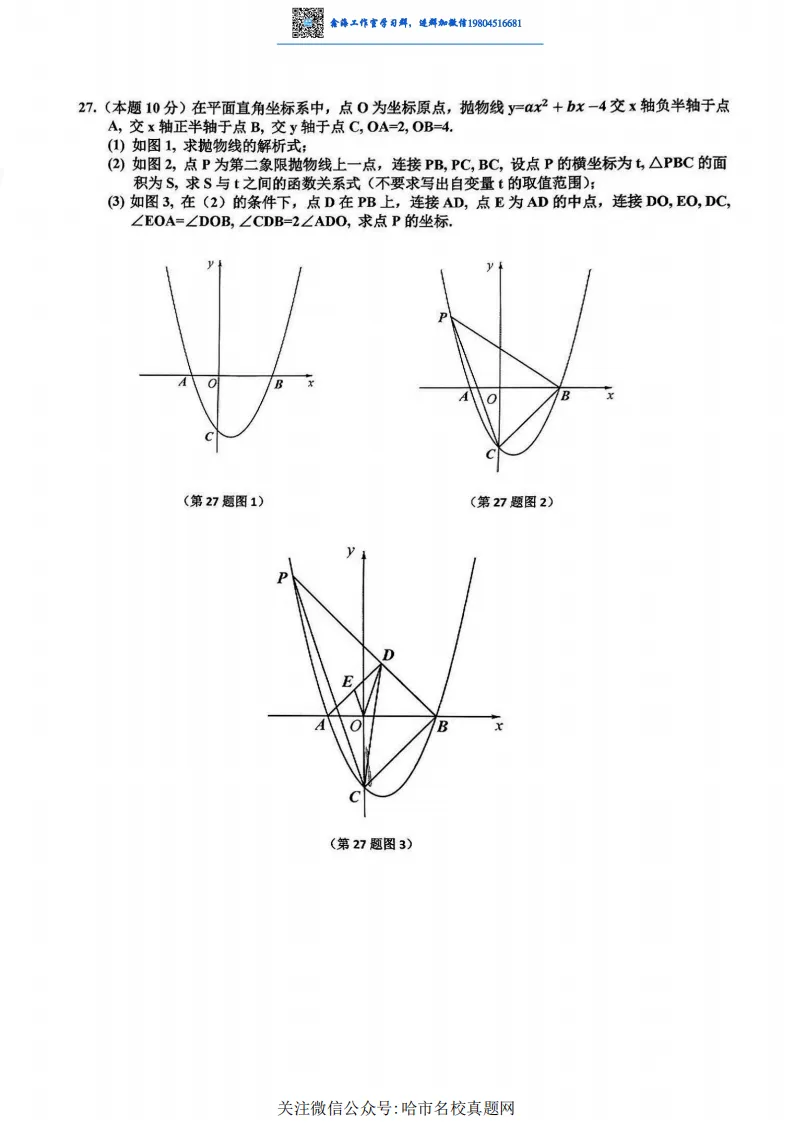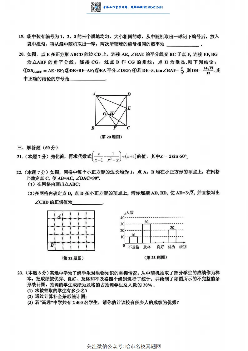 >2025哈尔滨区模道里区九年级数学模拟考试 一模 试卷+答案