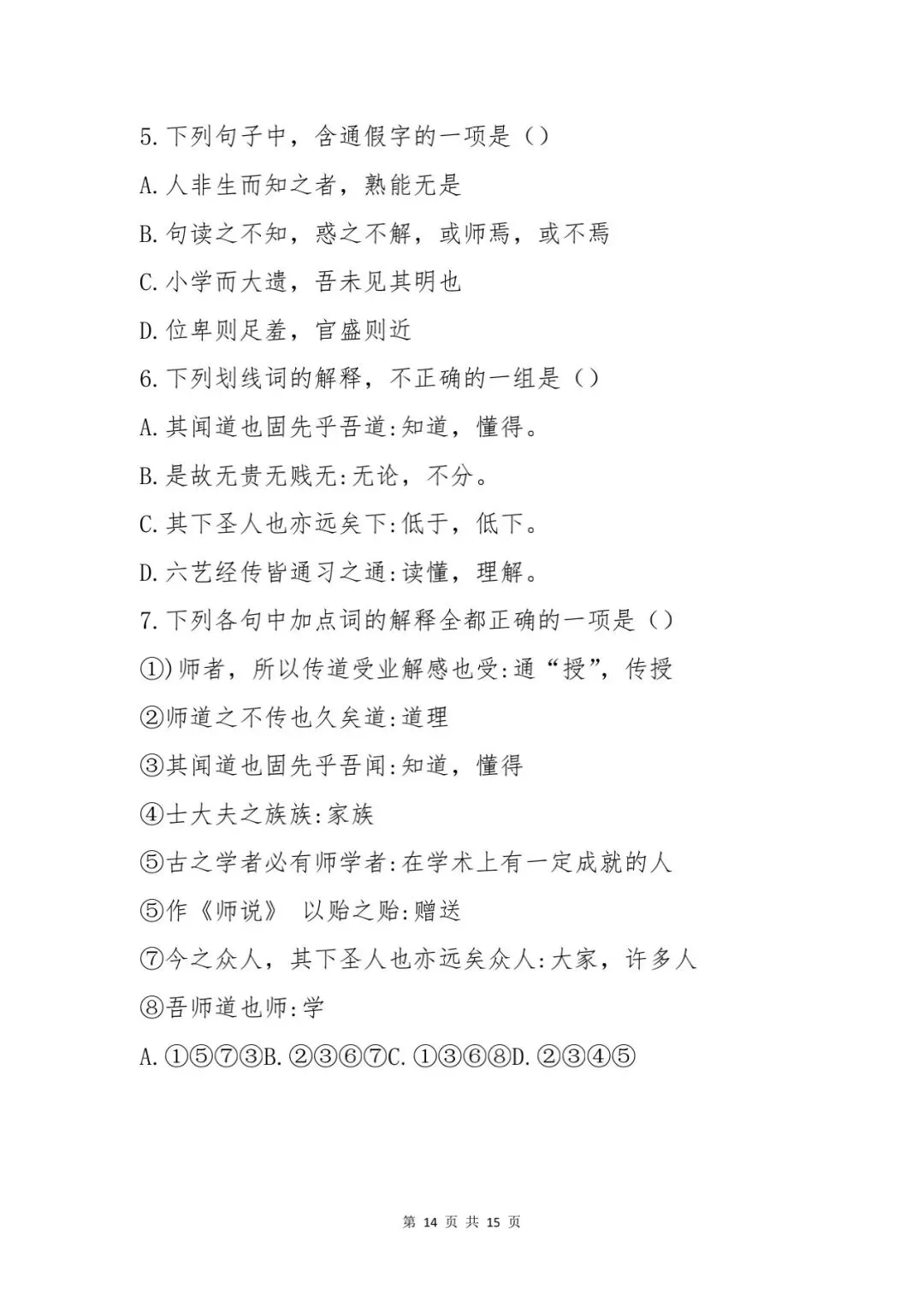 【语文】河北省中等职业学校对口升学考试—《师说》〔唐代〕韩愈(全面解析)