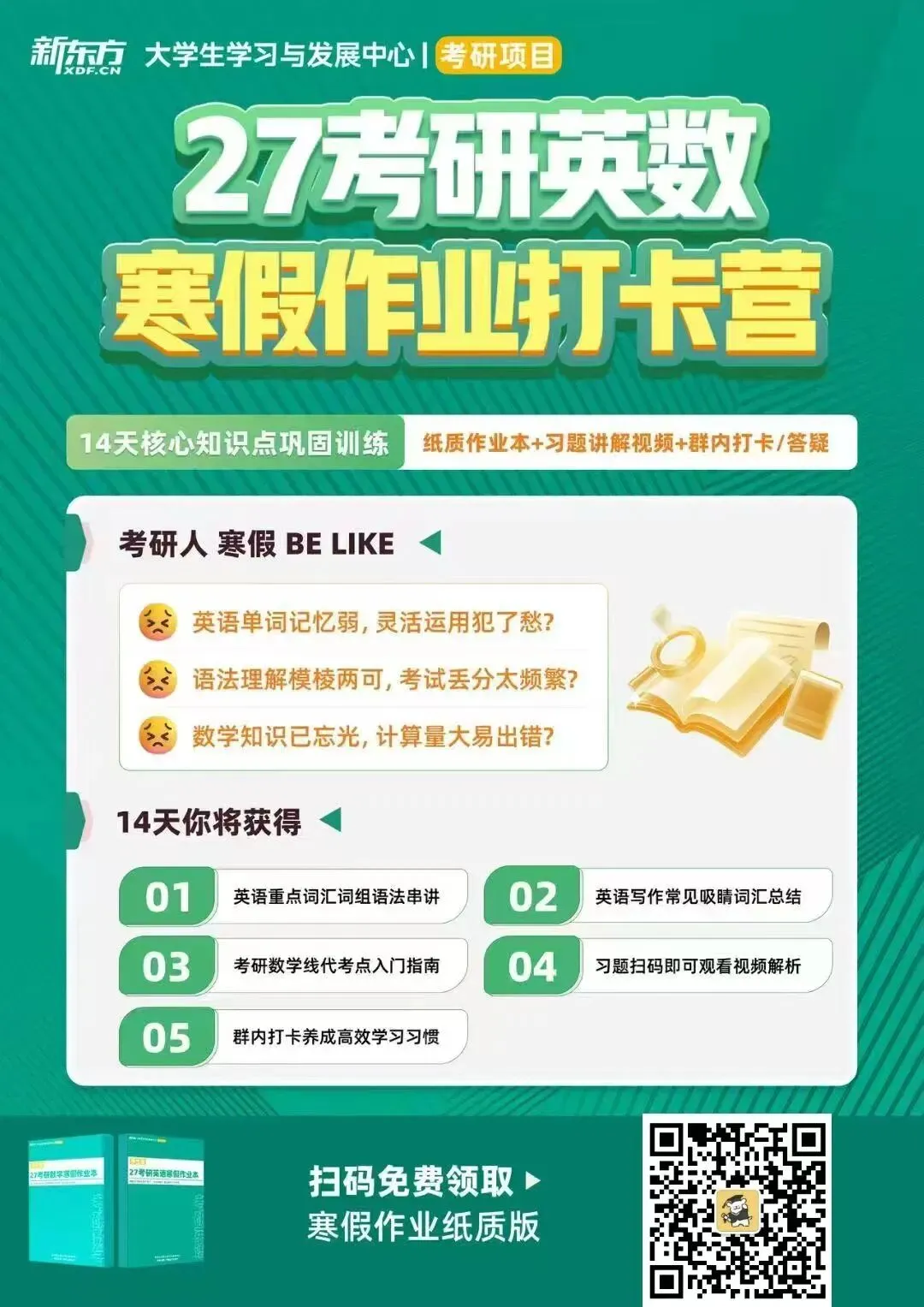 成功申领资源的同学将加入寒假学习打卡群,与志同道合的伙伴相互督促、共同进步,让这个寒假不孤单、有收获。
