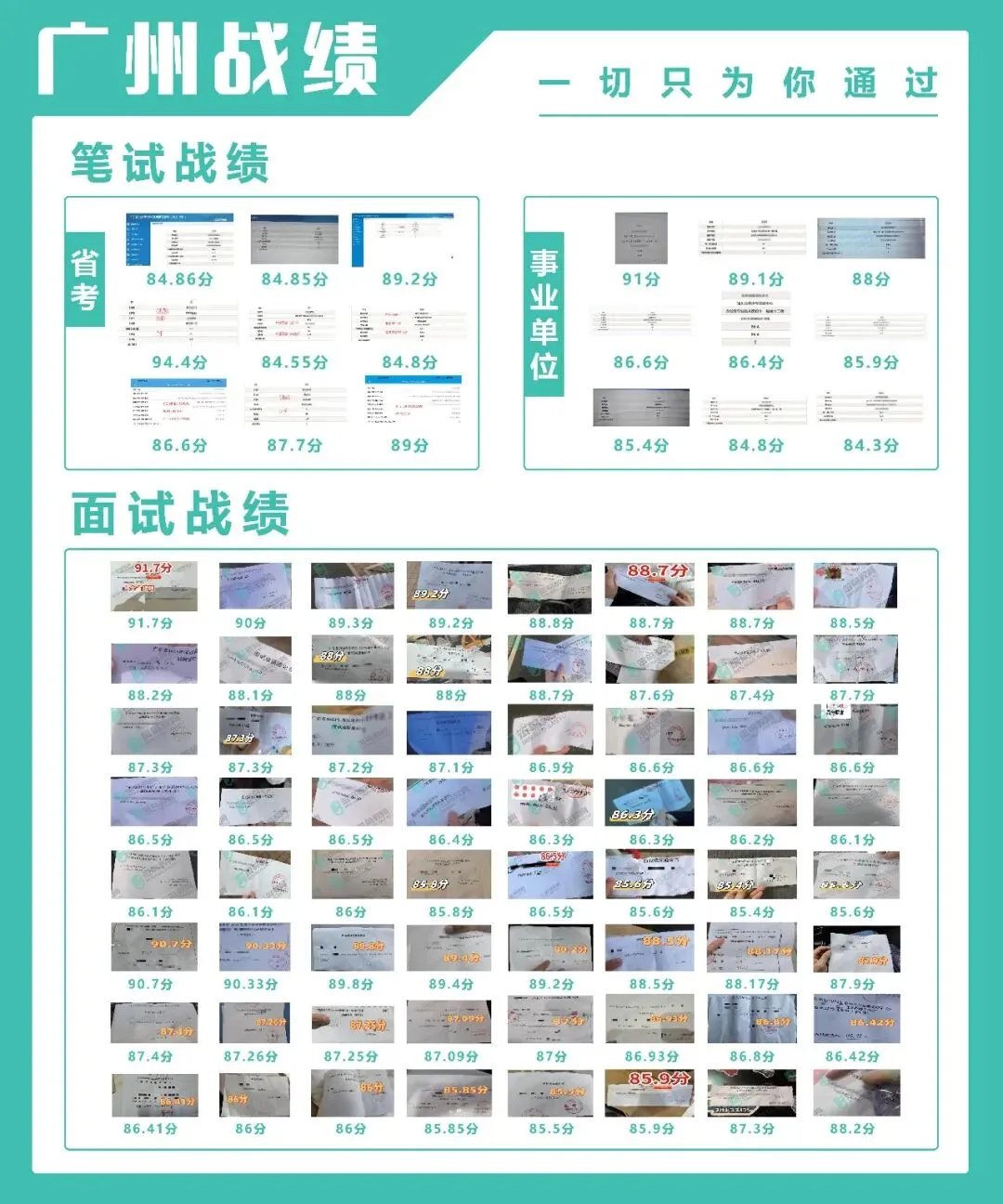 笔试、面试及考试总成绩合格分数线均为60分。笔试成绩在广东省公务员考试录用管理信息系统公布,考生可登录查询。
