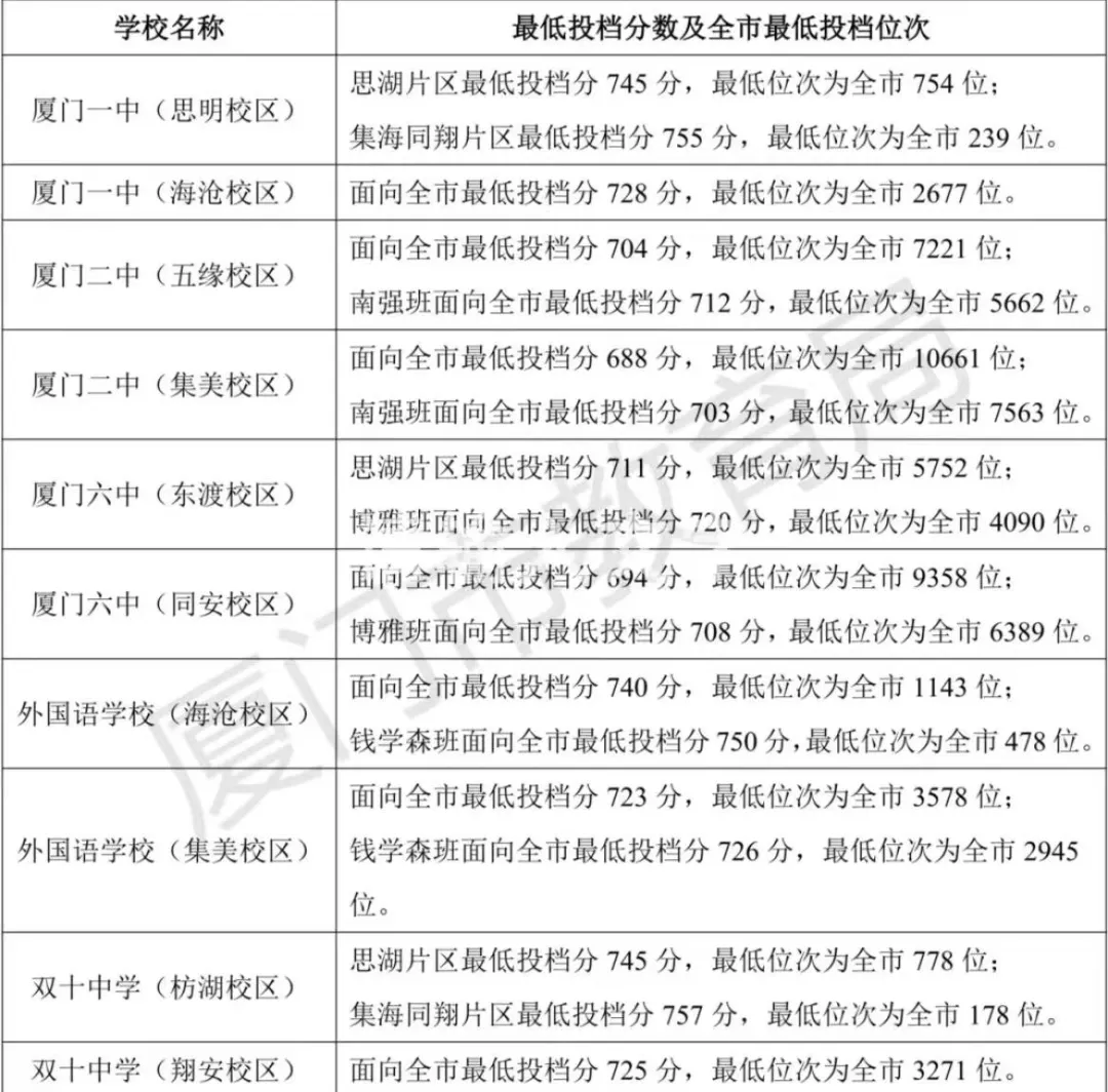 第一梯队:厦门一中、厦门双十中学、厦门外国语学校