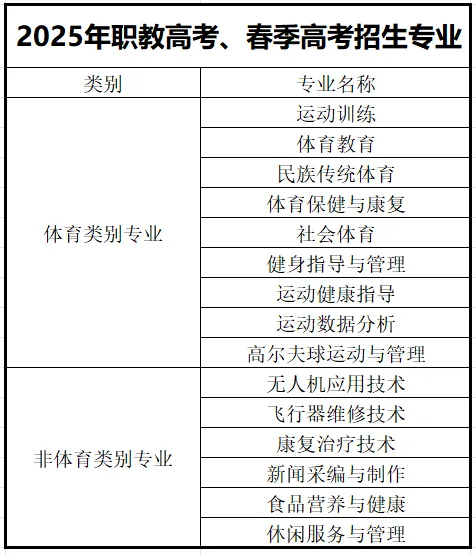 云南体育运动职业技术学院2025年职教高考、春季高考招生章程