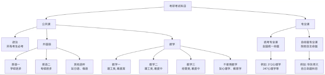 · 自命题:院校自主命题,如华东师大"347心理学专业综合"