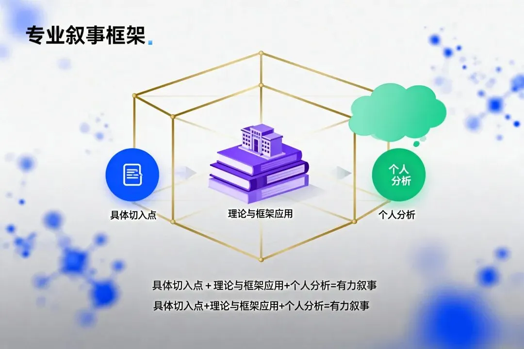 具体切入点 + 理论与框架应用 + 个人分析 = 有力叙事