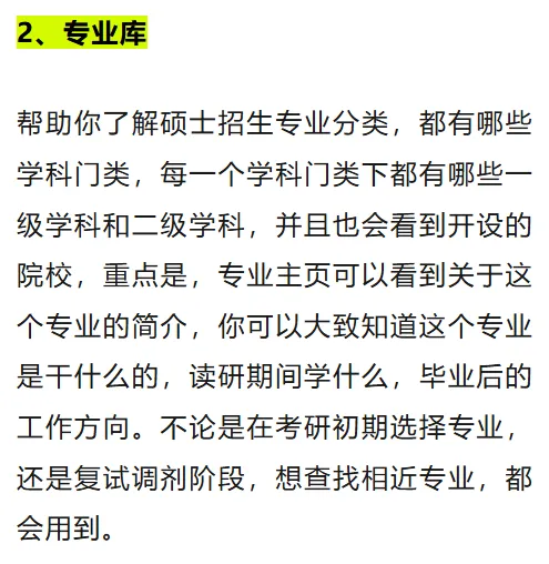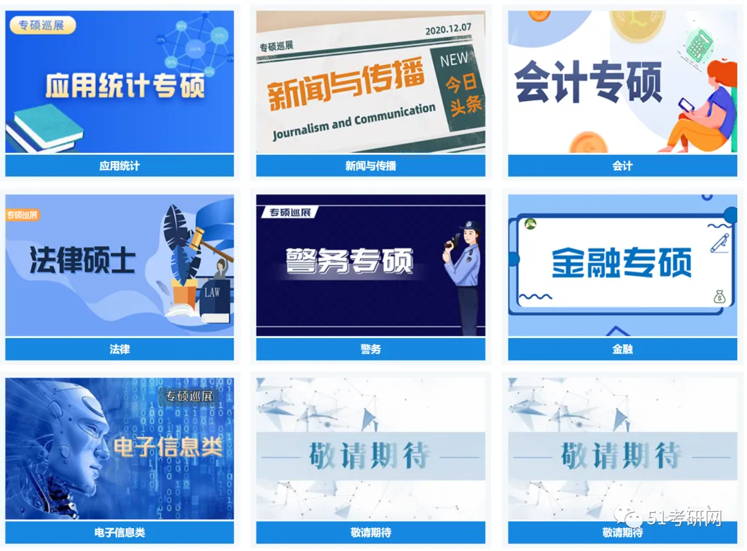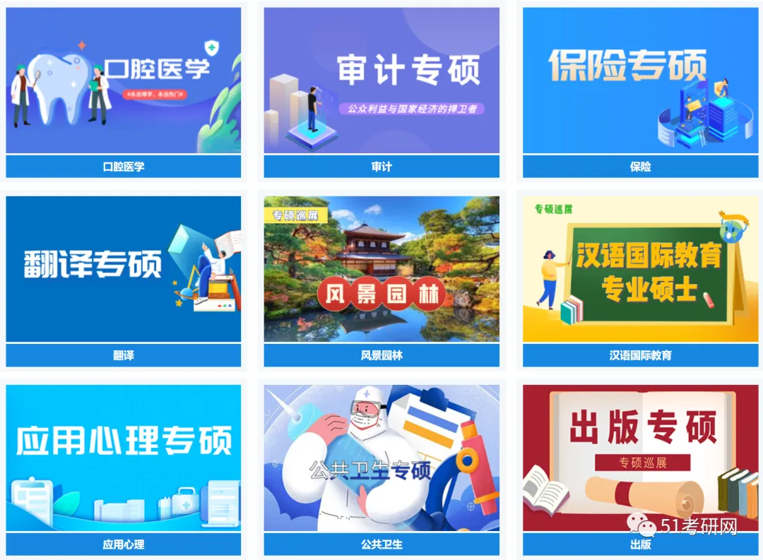 打算考专硕的同学必看的一个栏目,专硕巡展,在首页专业学位点击进入即可看到,专业学位的详细介绍,并且还有各个专硕的系列文章,包括专业介绍、院校介绍、考试情况、就业方向等等,非常全面,值得一看。