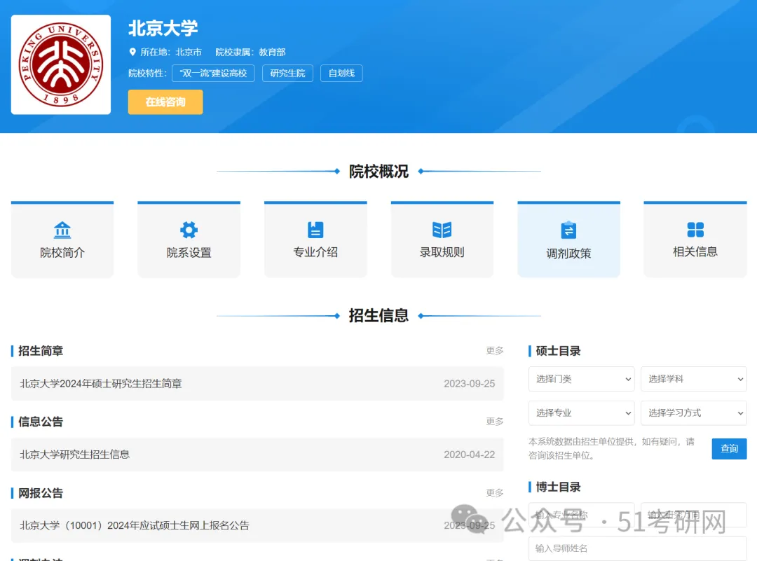 可以查到每个省份都有哪些院校,并且在院校主页,可以看到院校简介、院系设置、专业介绍、录取规则、调剂政策等相关信息。