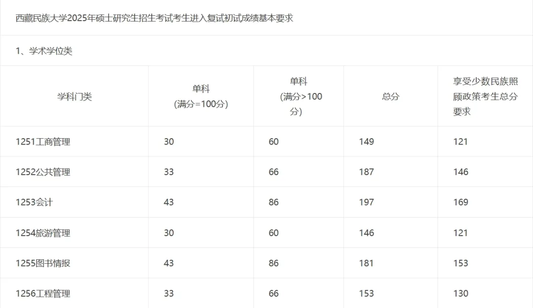 《西藏民族大学2025年硕士研究生招生考试考生进入复试初试成绩基本要求》中很多专业仍执行B区线。