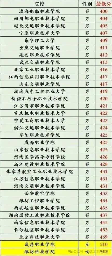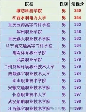 2025山东招收定向培养军士的50所招生院校中,300分以下共两所,分别是潍坊科技学院的240分和江西水利电力大学的244分,可以说,这是“捡漏”了!就山东省内而言,今年各定向士官招生院校资格线差异很大: