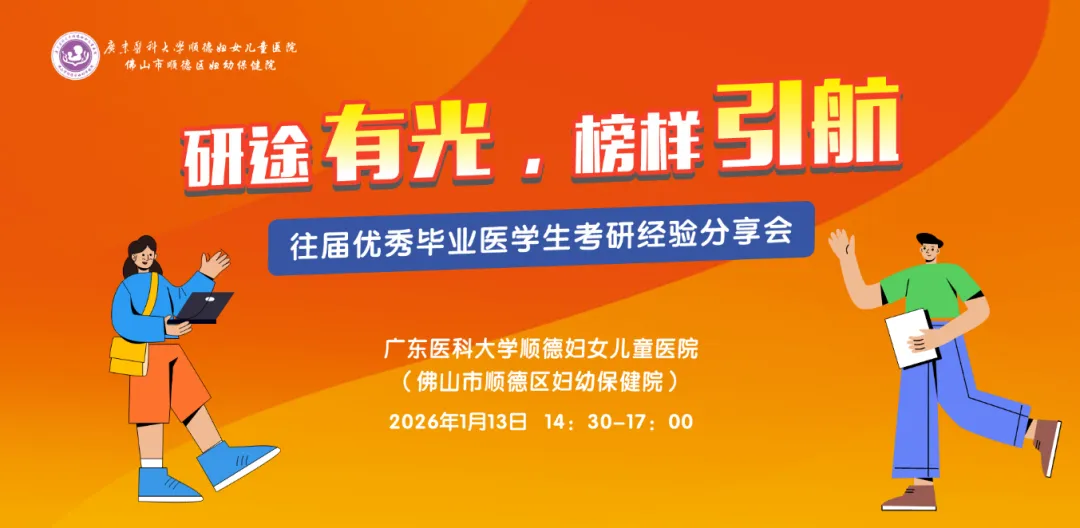 为充分发挥优秀校友的榜样力量,帮助学生精准把握考研政策、明晰学业方向、构建科学复习体系,2026年1月13日下午,由广东医科大学顺德妇女儿童医院科教科组织的“传承医路薪火,共话研途未来”考研分享会,在二号会议室圆满举行,为追梦医学生们送上了一场干货满满的“备考盛宴”。