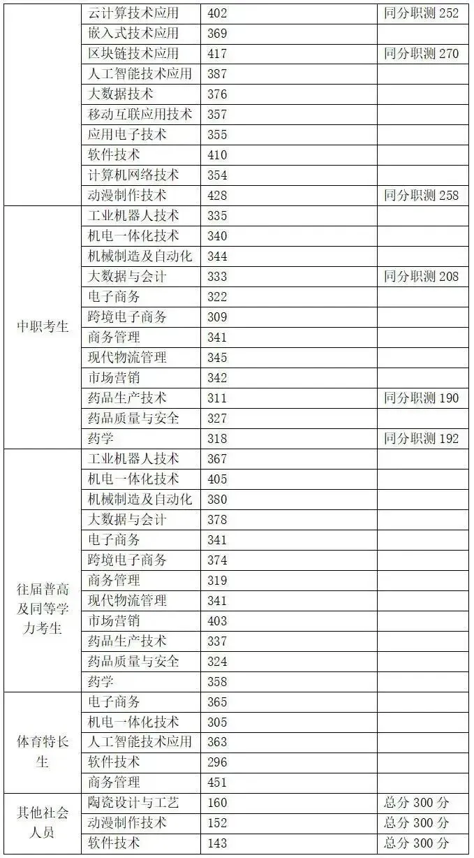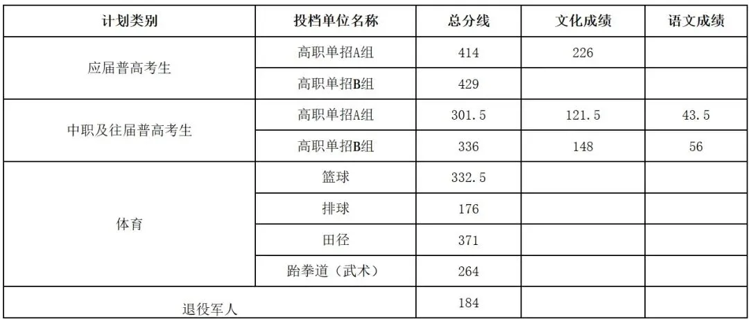 B类(往届中职) | 367.5(同分,职业技能160,语文82.5) | |