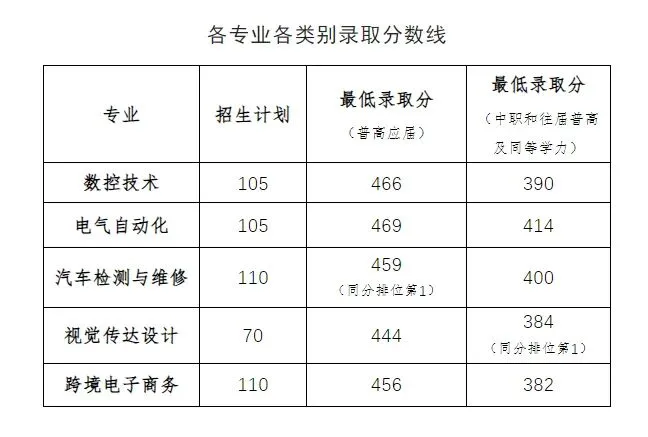 A类(应届普高) | 433.5(同分,职业技能192.5) | |