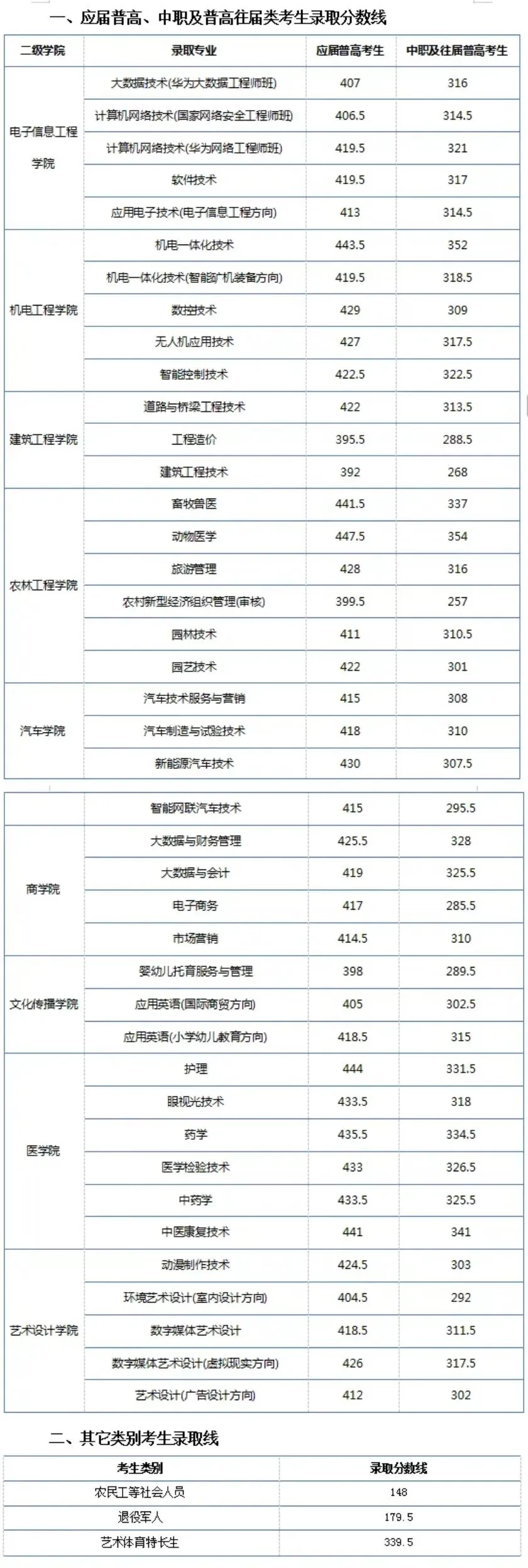 输配电工程技术 | 应届普通高中毕业考生(第一类考生) | 447.5 | |
