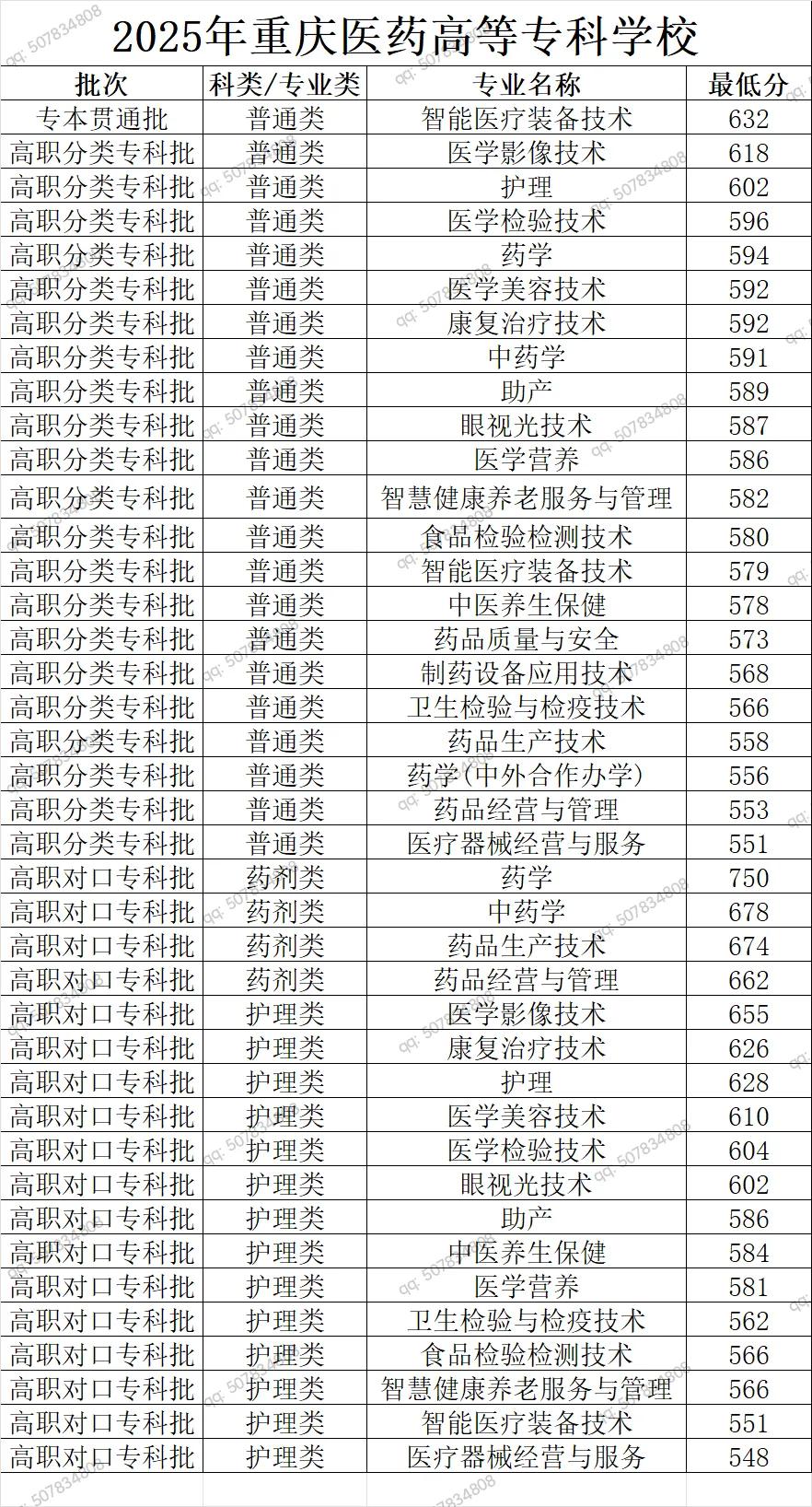 >2025年重庆医药高等专科学校分类考试录取分数线