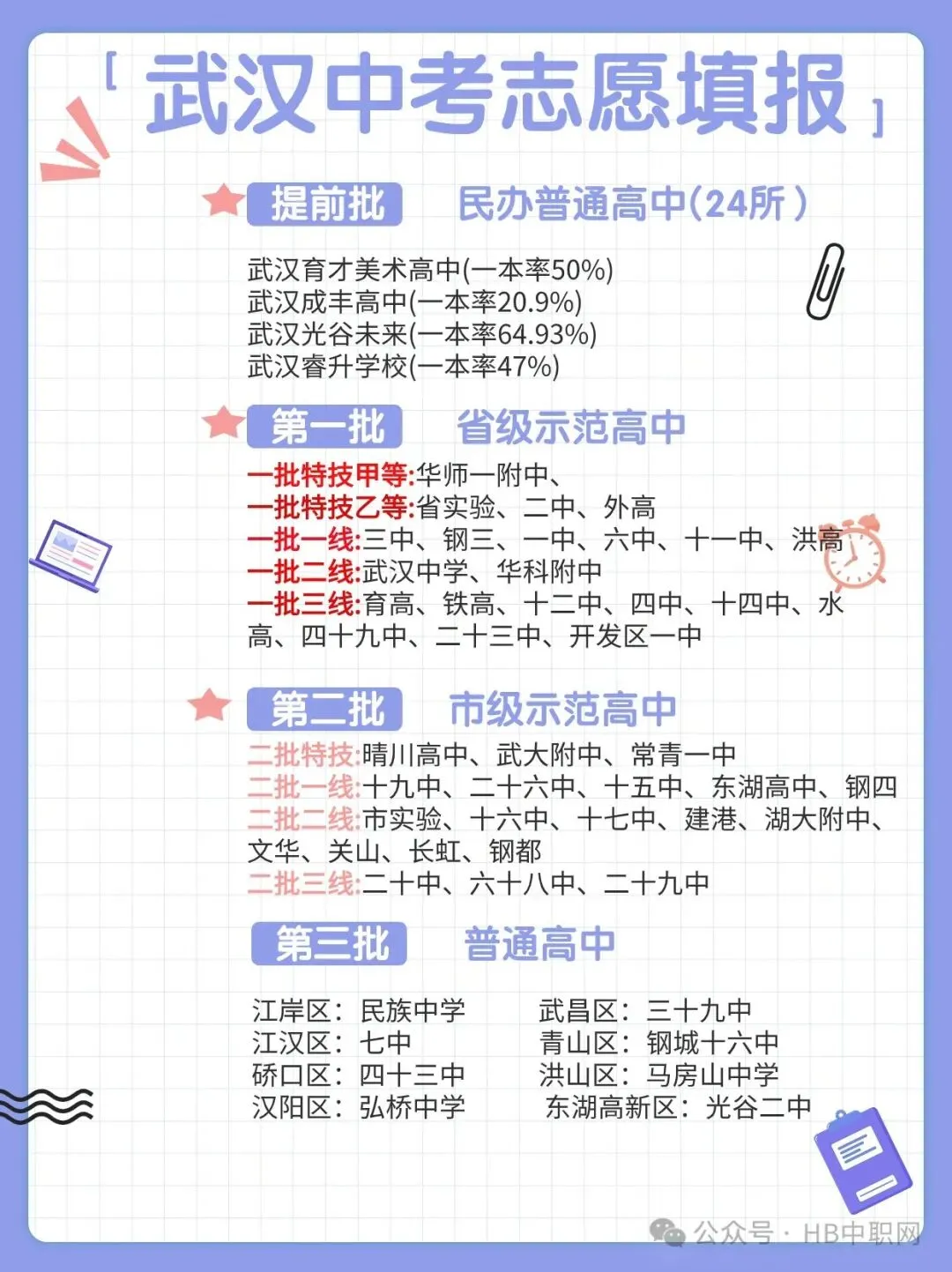 志愿填报时尽量选择保底高中,例如武汉民族中学、三十九中等。