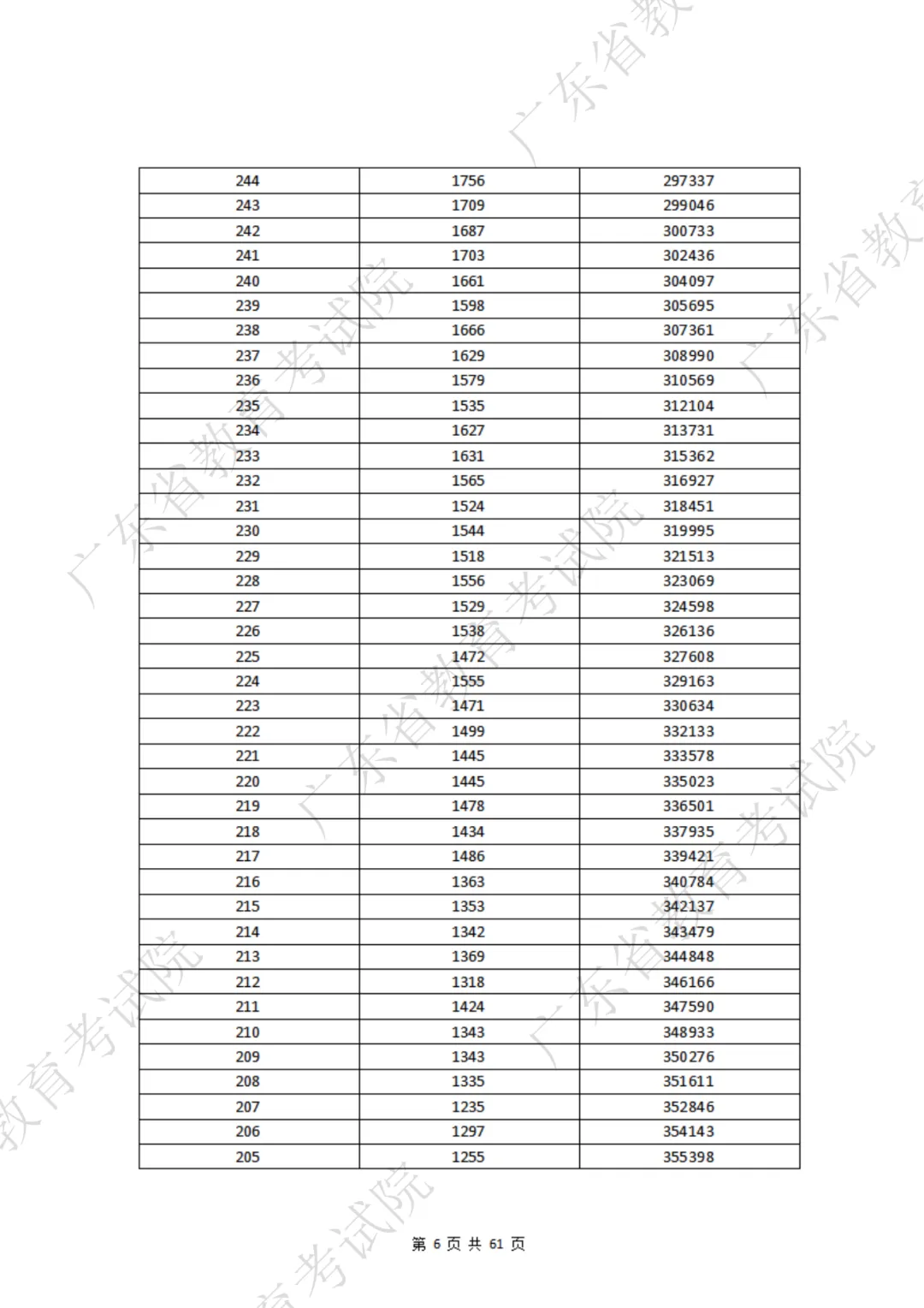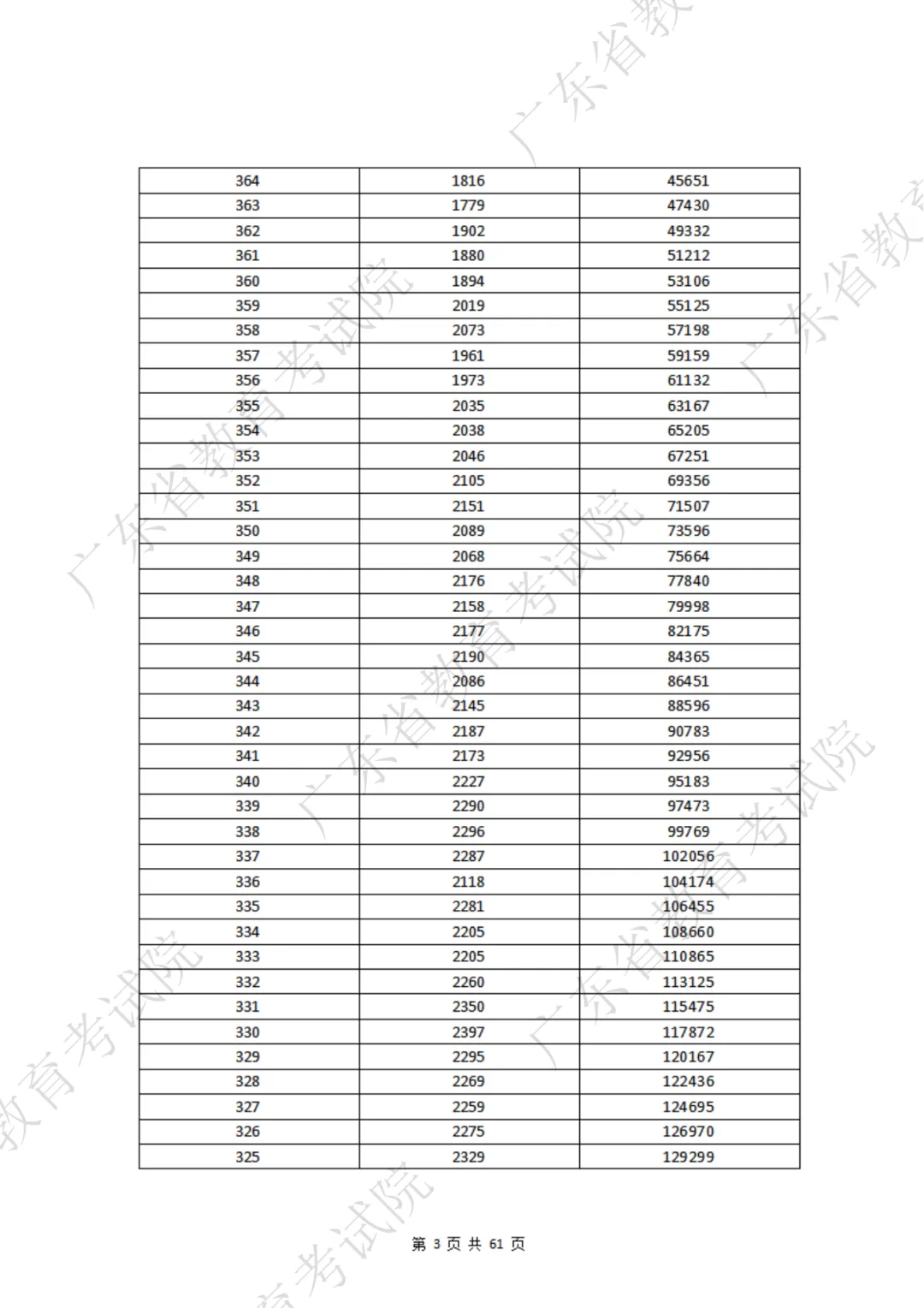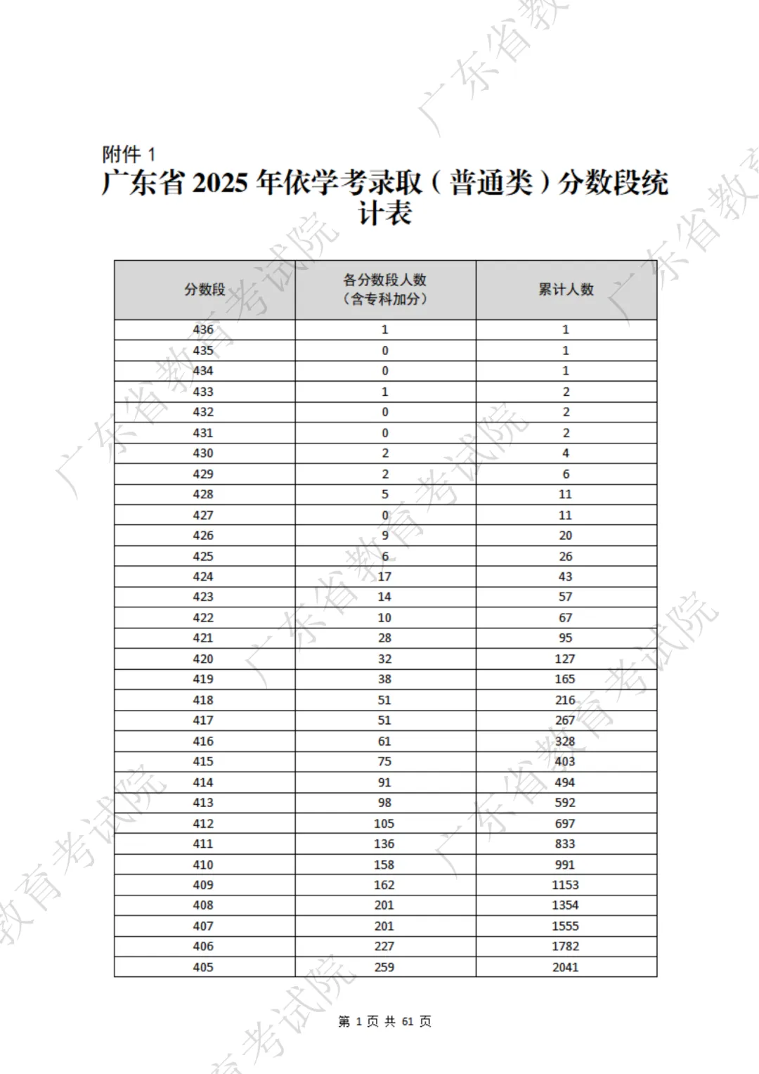 每年成绩公布后考试院都会公布一分一段表