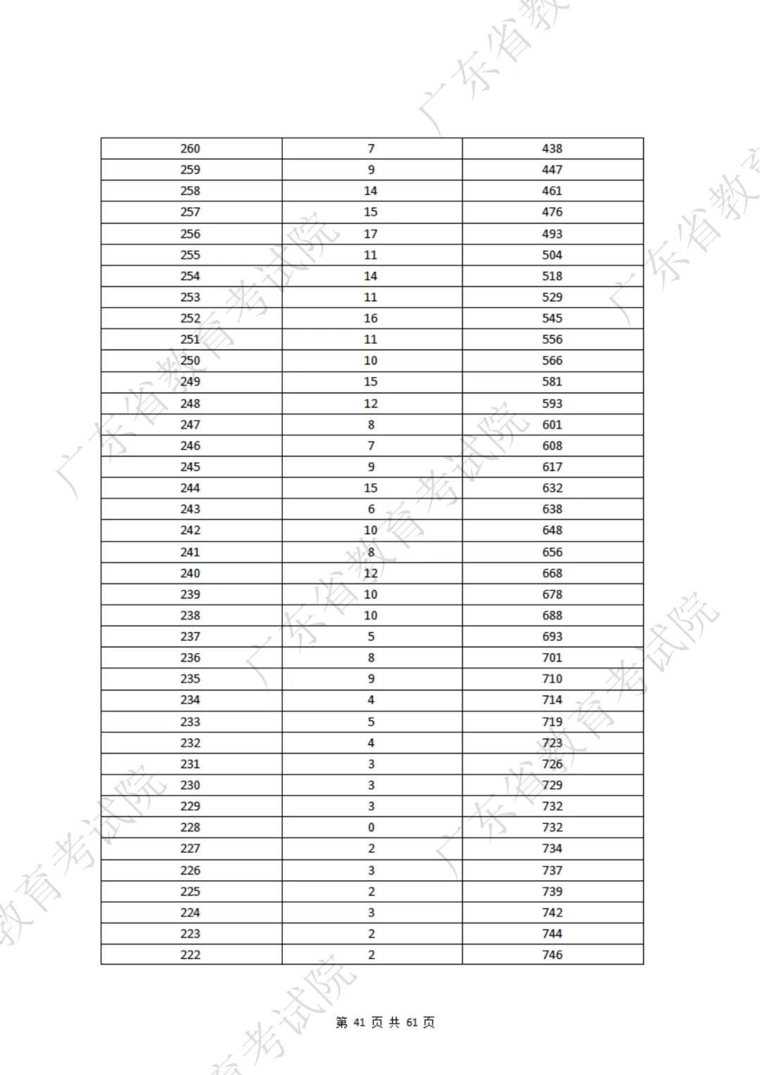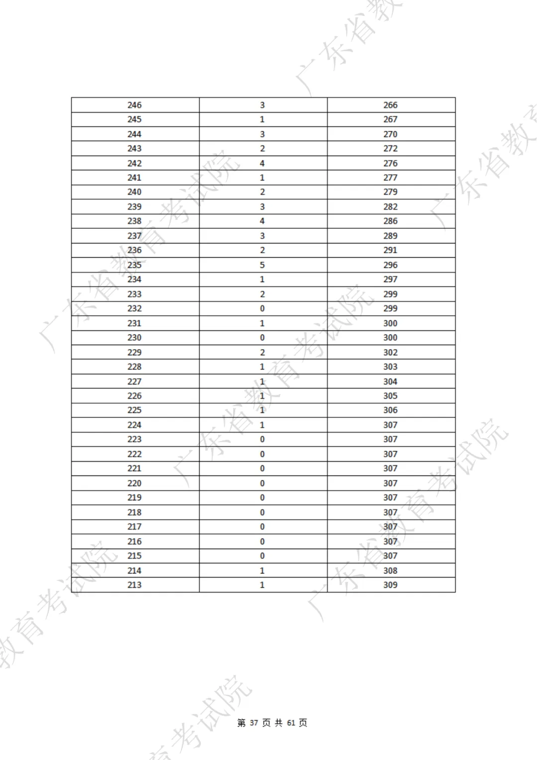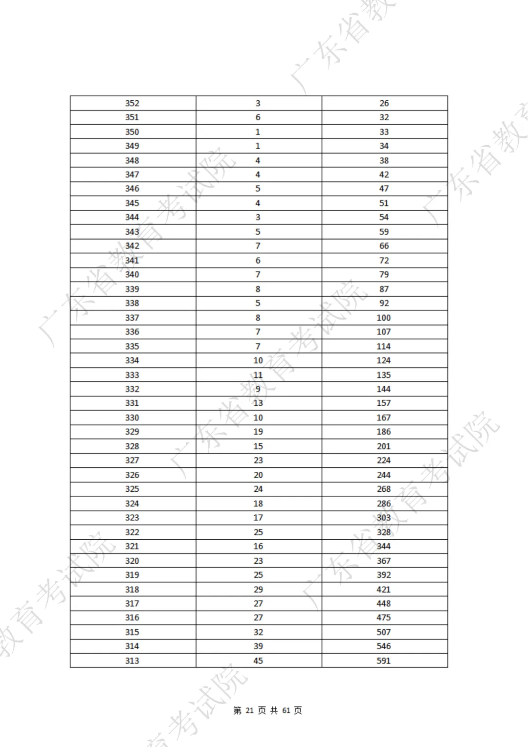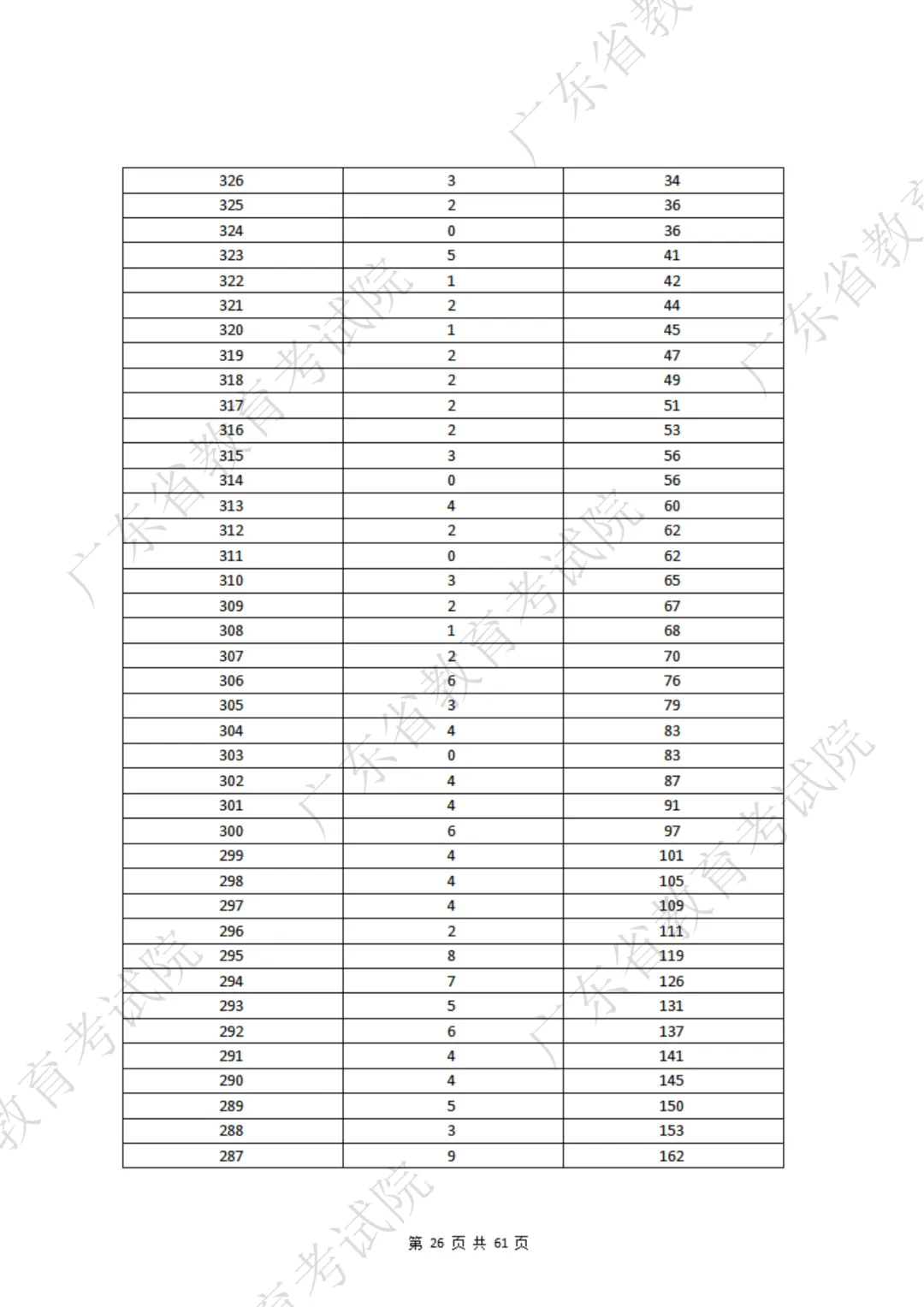 表格包含三项内容:分数段、分数段人数、累计人数。