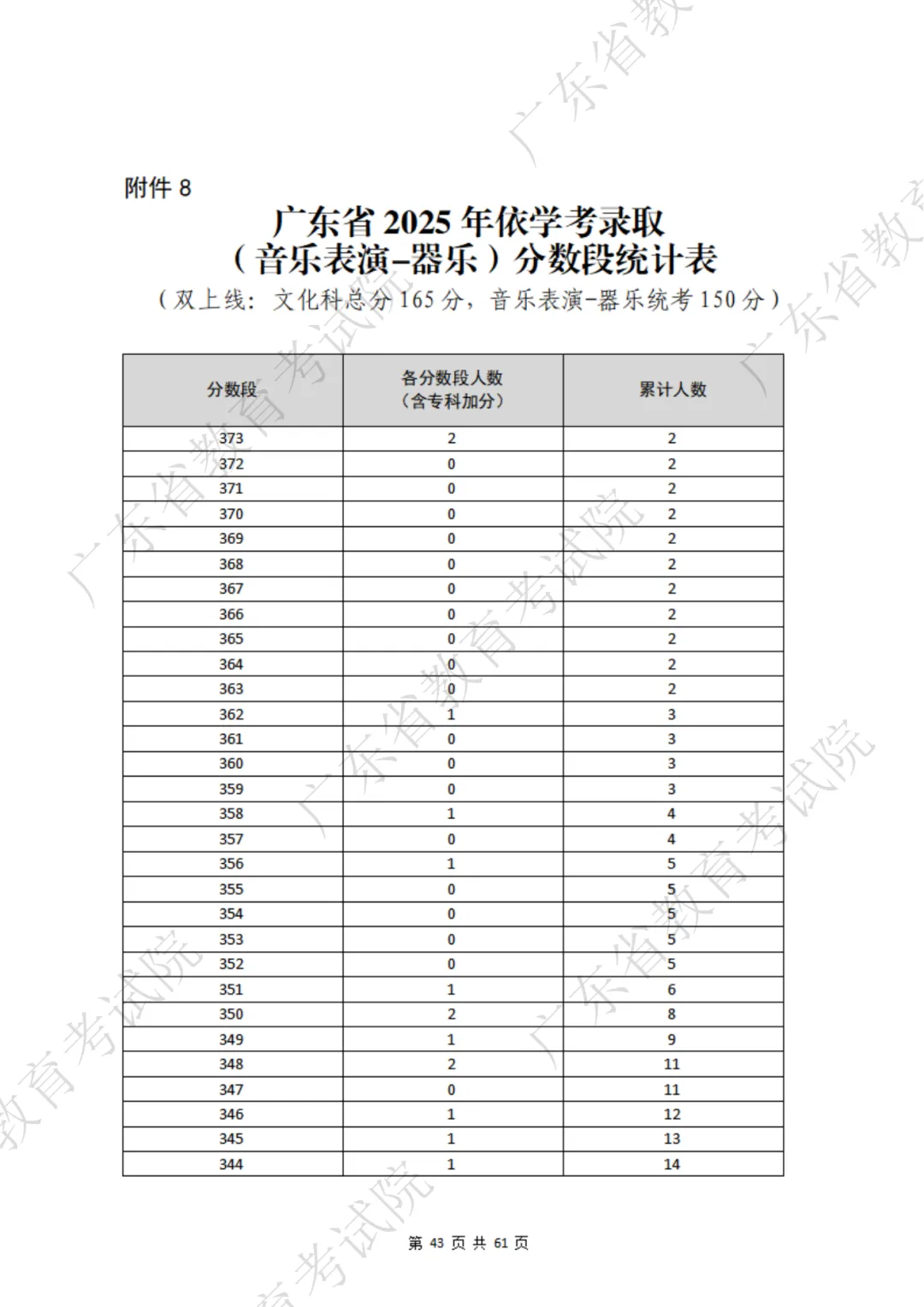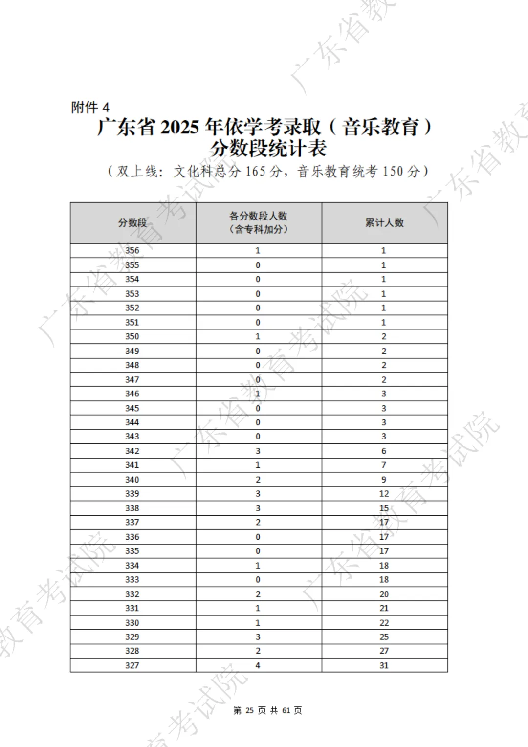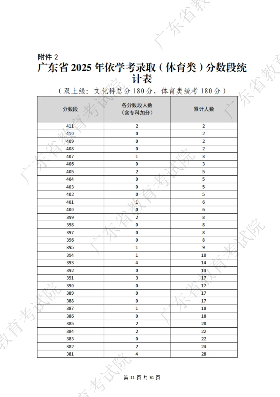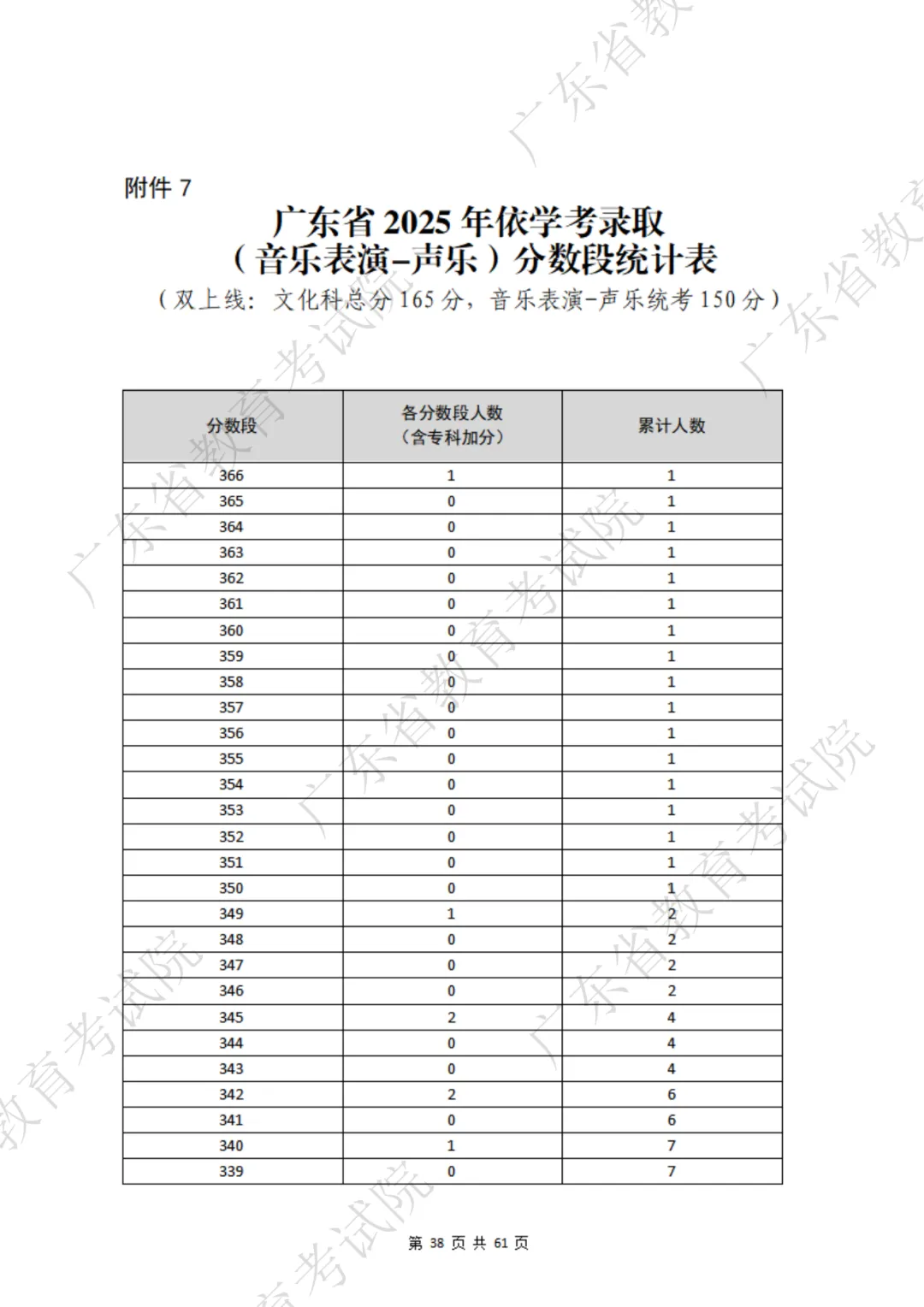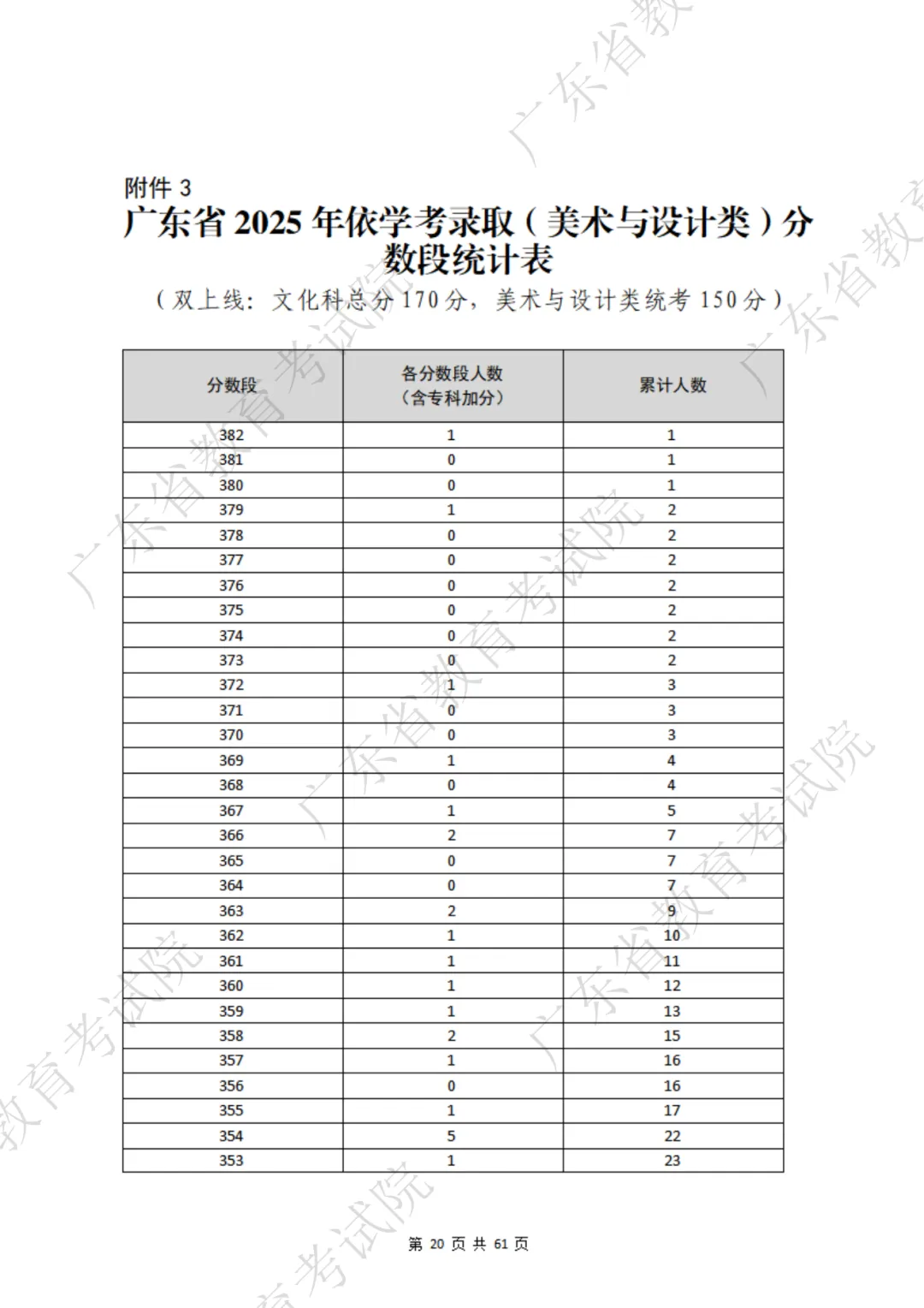 表格包含三项内容:分数段、分数段人数、累计人数。