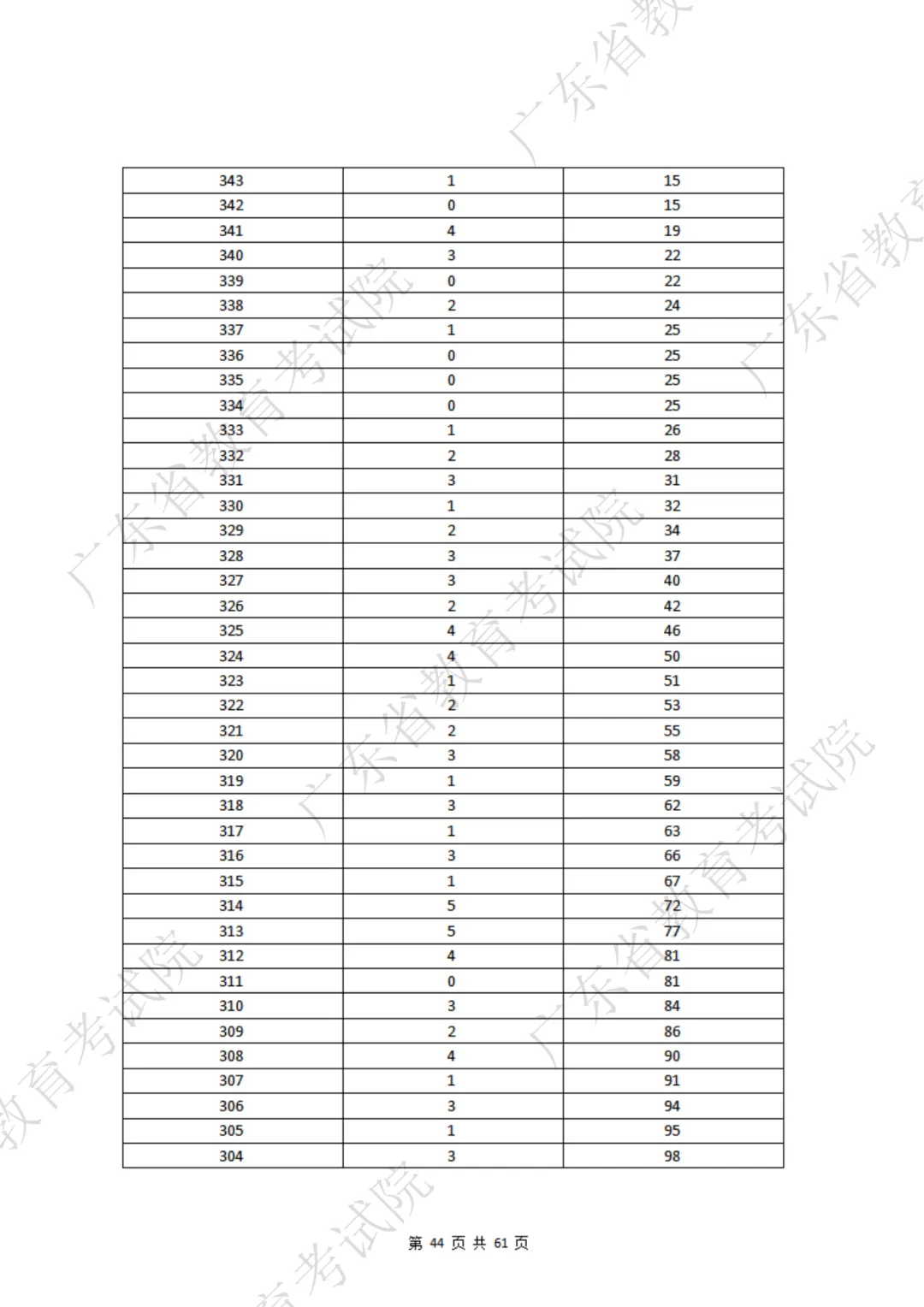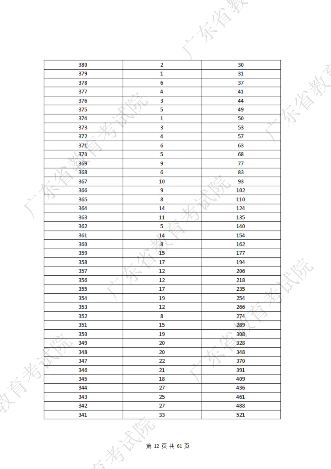 累计人数:这个分数内最后一名的排名。