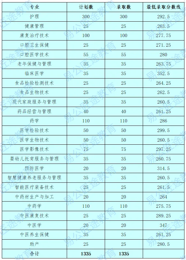 从录取分数来看,近三年大多数专业的录取分数都差不多,都在270分-295分左右,但临床医学和预防医学这两个专业的录取分数则呈现出较为明显的上涨趋势,录取分在25年分别上涨到了352.5分和314.5分。