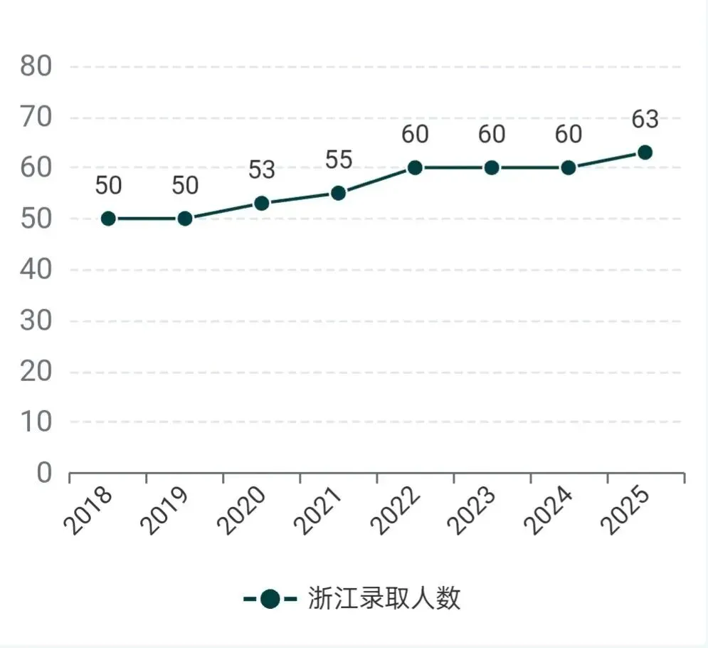 2025年在浙江共录取63名高中理科毕业生(选考物理和化学),通过综合评价招生模式录取60人(其中中外合作办学专业录取6人),通过普通本科批次录取3人。普通本科批次投档线660分,省排位6600名。