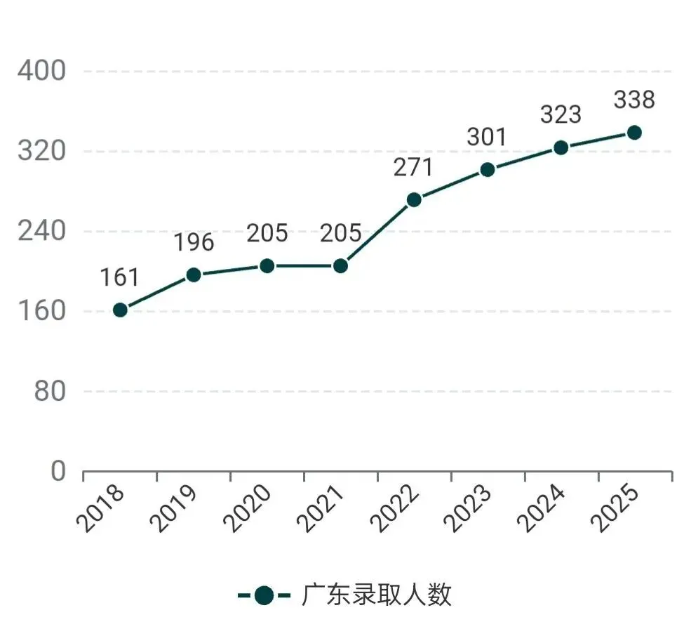 2025年在广东共录取338名高中理科毕业生(选考物化),通过综合评价招生模式录取300人(其中中外合作办学专业录取18人),通过普通本科批次录取38人(其中中外合作办学专业录取16人)。普通本科批次投档线652分,省排位3300名。