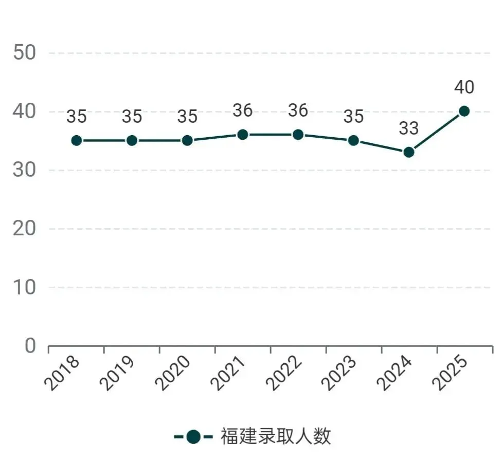2025年在福建共录取40名高中理科毕业生(选考物理和化学),全部通过综合评价招生模式录取,其中普通物理类录取34人,中外合作办学专业录取6人。录取考生的高考平均分650分,省排位物理类1720名,此外录取信息奥赛银牌考生一名。