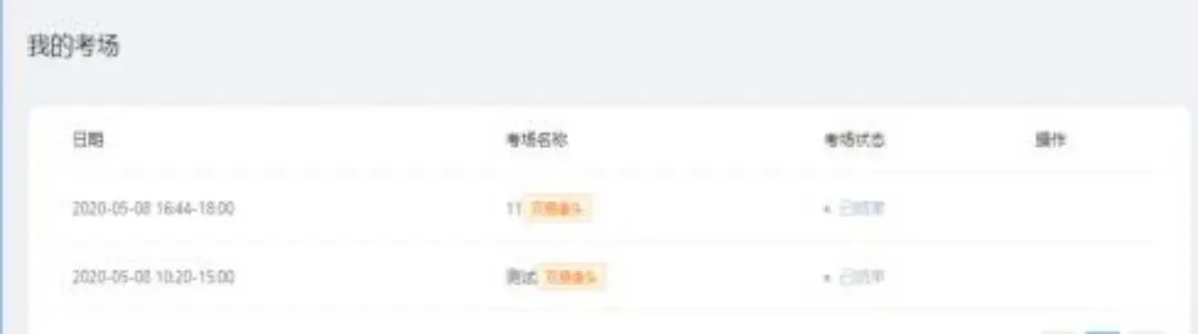 在我的考场,可以看到考场名称,考场时间,考场状态。