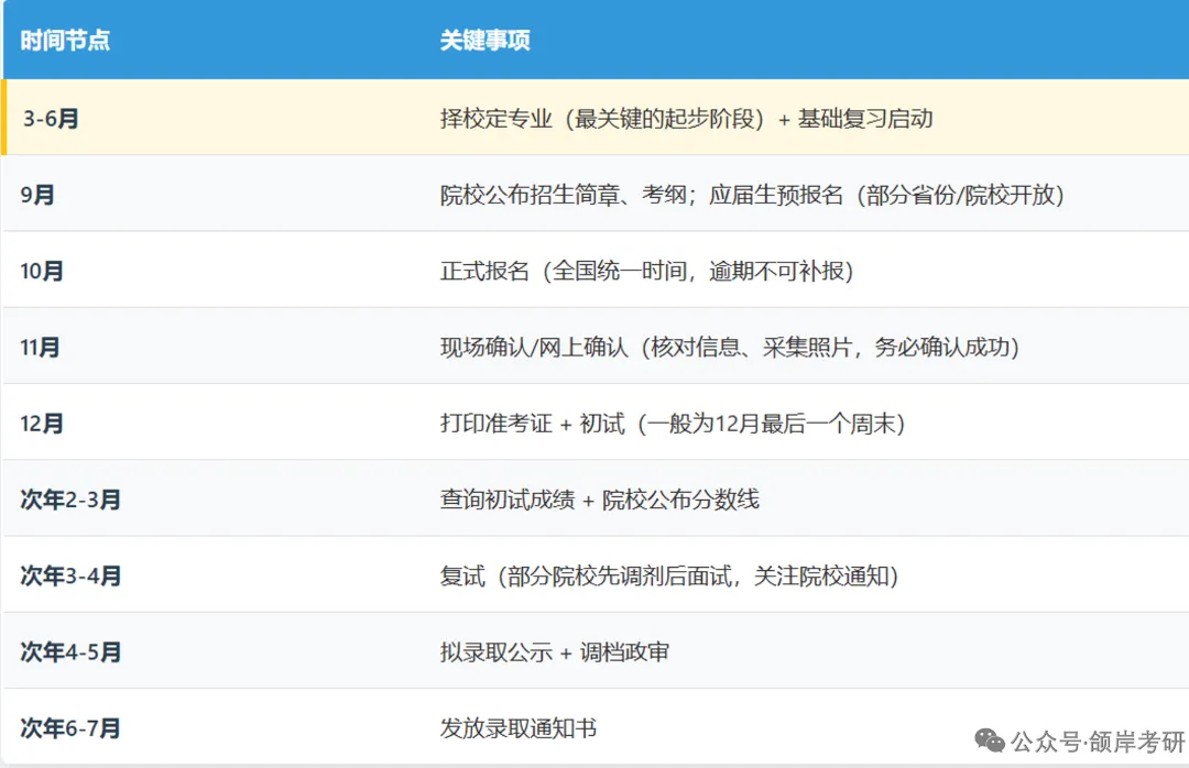 1. 核心时间轴(以当年12月初试为例)
