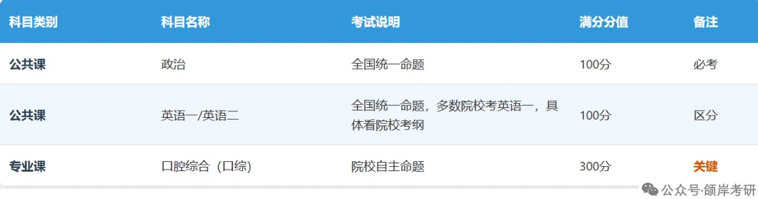 口腔考研分为公共课、专业课两大块,全国统一命题+院校自主命题结合