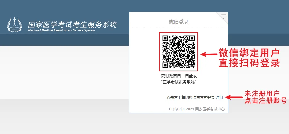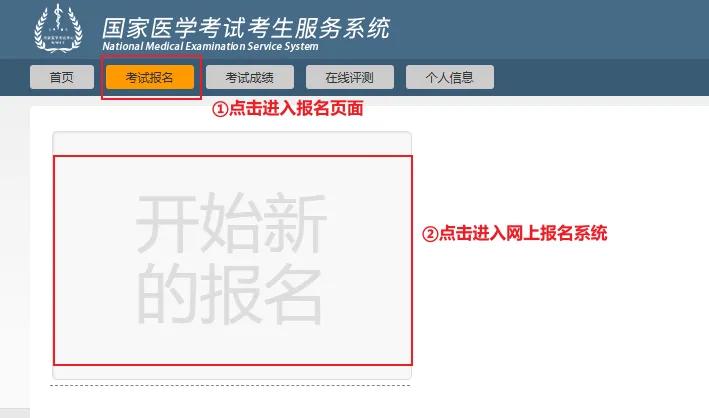 ② 需首先在国家医学考试考生服务系统上完成账户注册,注册成功后,即可进行考试报名。请牢记注册时的用户名和密码。