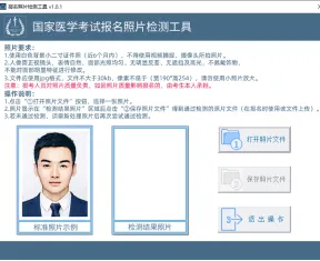 报名上传照片前须通过“医考报名照片检测工具”(下载地址在上传照片界面处提示,如下图)进行检测处理。检测过程请严格按页面说明操作,检测通过后保存,登陆国家医学考试考生服务系统报名时上传,报名系统不接受未经该工具检测的照片。请广大考生提前准备,以免影响考试报名。