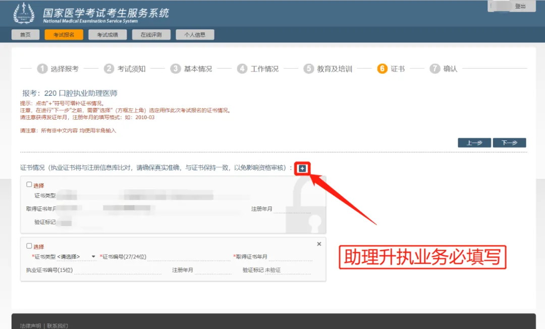 在医师资格考试报名中,用户若以中专学历报考执业等级考试科目,需要提供“执业助理医师“证明,其他情况此环节可以直接跳过。