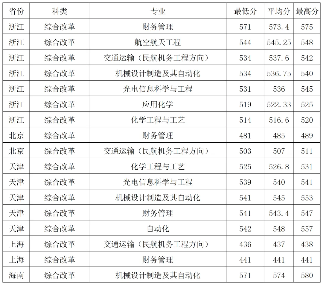 山东航空学院2025年在浙江本科批普通类录取分数线较高的专业:财务管理 571分、航空航天工程544分、交通运输(民航机务工程方向)534分、机械设计制造及其自动化534分,最低的是化学工程与工艺514分。