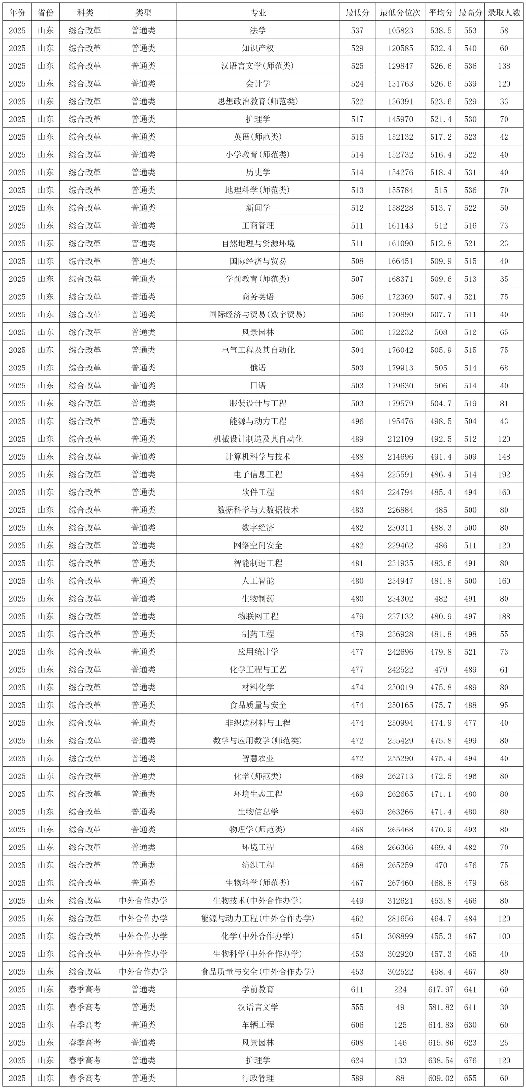 德州学院2025年在山东本科批录取分数线较高的专业:法学537分、知识产权529分、汉语言文学(师范类)525分、会计学524分、思想政治教育(师范类)522分、护理学517分、英语(师范类)515分,最低的是生物科学(师范类)467分,最低分位次267460。