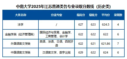 中南大学2025年江苏省各专业录取分数线(历史类+物理类)及报考建议