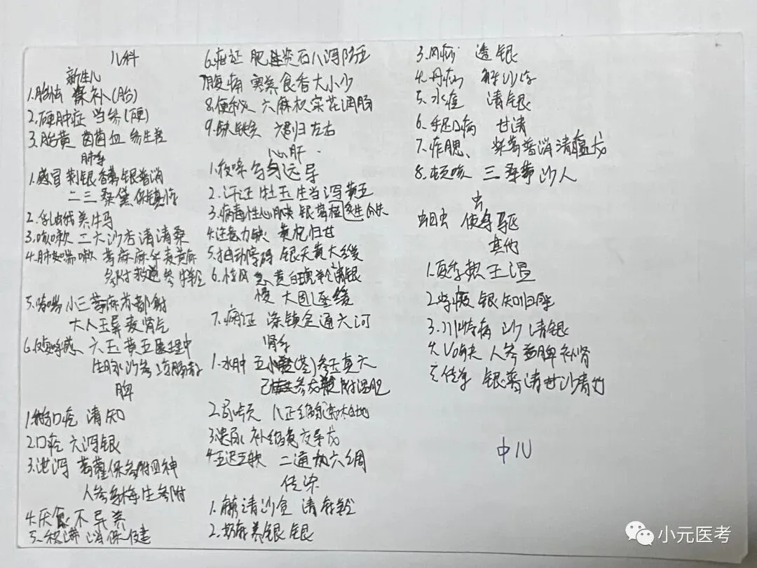 以下图片为儿科每个疾病具体的辨证选方,红笔标出来的部分为歌诀趣记,大家可以结合上图一起背诵,争取做到根据每一个疾病的歌诀倒推出该疾病的每个证型及选方。注意⚠️:小儿感冒的兼证,儿科传染病中的变证。 ⚠️没关注公众号的关注一下公众号,其他科目的规培笔记都收录于中医规培合集,有需要的可以自行查看。大家都加油好好复习,顺利通过考试。