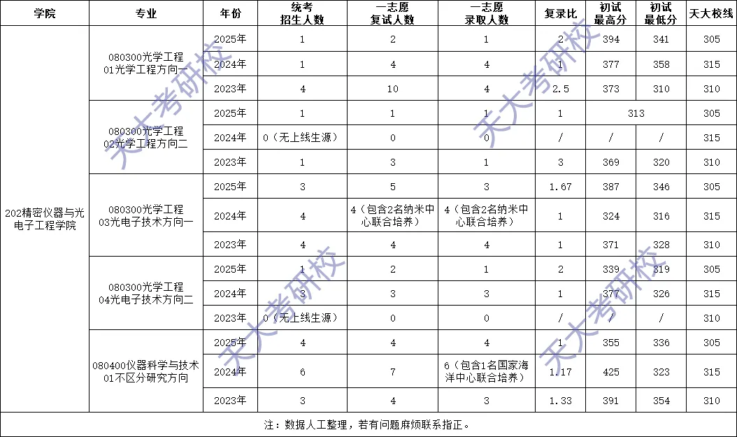 现阶段大家都处在复试入门阶段,最近大家问的最多的就是“今年复试线大概得多少分呀?”“复试刷不刷人?”“复试主要考什么内容,怎么考?”基本都是想了解对应专业的复试情况。为了解决大家的相关疑惑,本期主要分享精仪学院的相关情况,方便报考天大精仪学院的同学进行参考!快来看看吧!