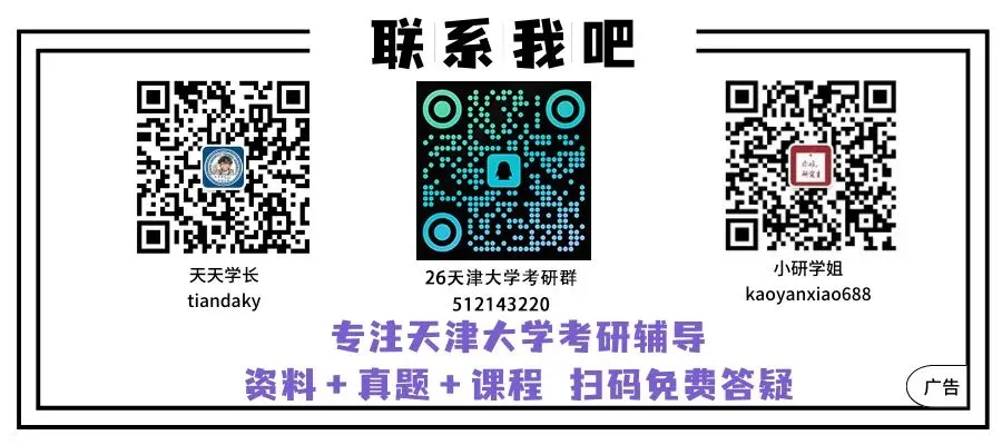 好了,今天的内容就到这里啦!天大26考研的同学需要报名考研辅导班可以直接联系学长学姐👇
